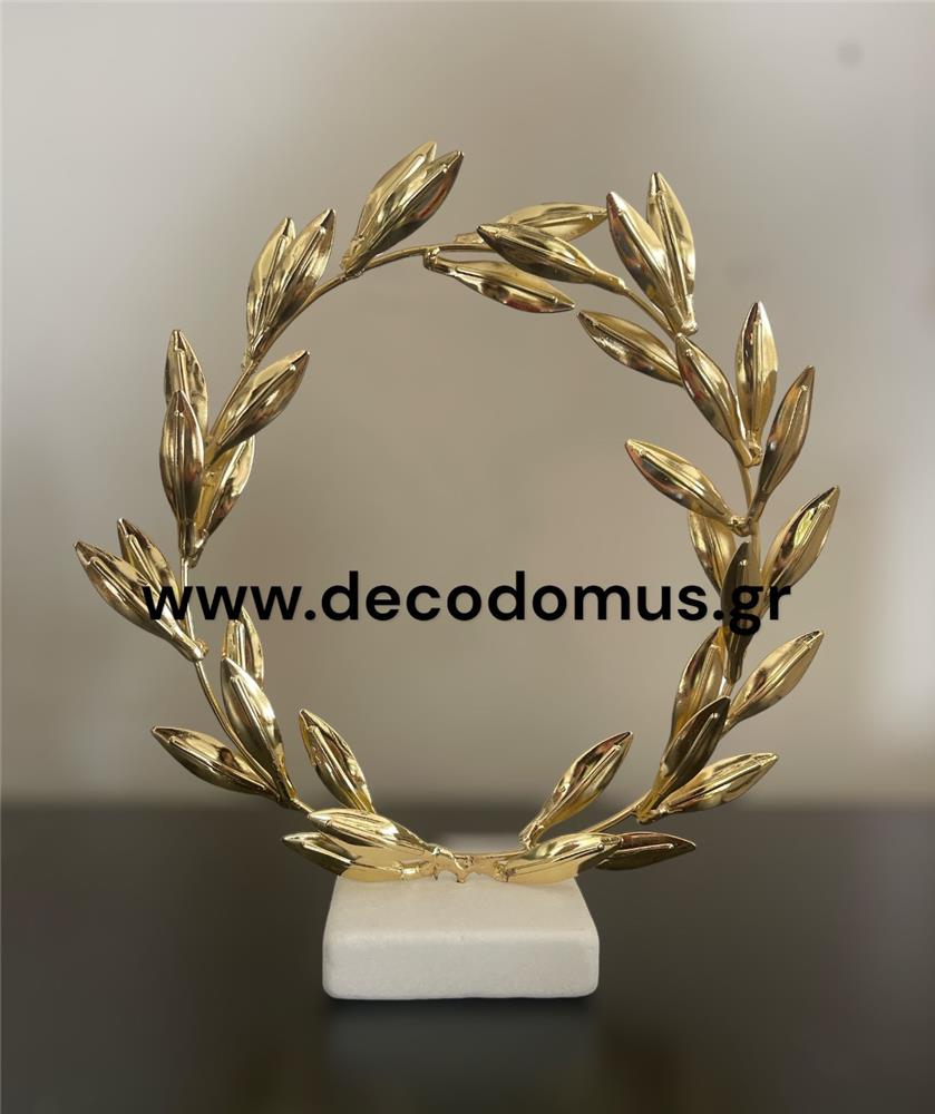 ΧΡΥΣΟ ΜΕΤΑΛΛΙΚΟ ΣΤΕΦΑΝΙ ΕΛΙΑΣ ΣΕ ΜΑΡΜΑΡΙΝΗ ΒΑΣΗ Μέταλλο Φ0.23*Υ0.26