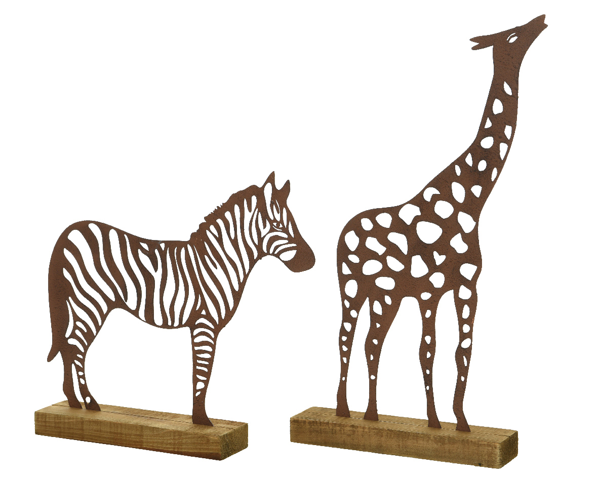 Μεταλλική διακοσμητική διάτρητη καμηλοπάρδαλη, με ξύλινη βάση, σε χρώμα χαλκού.