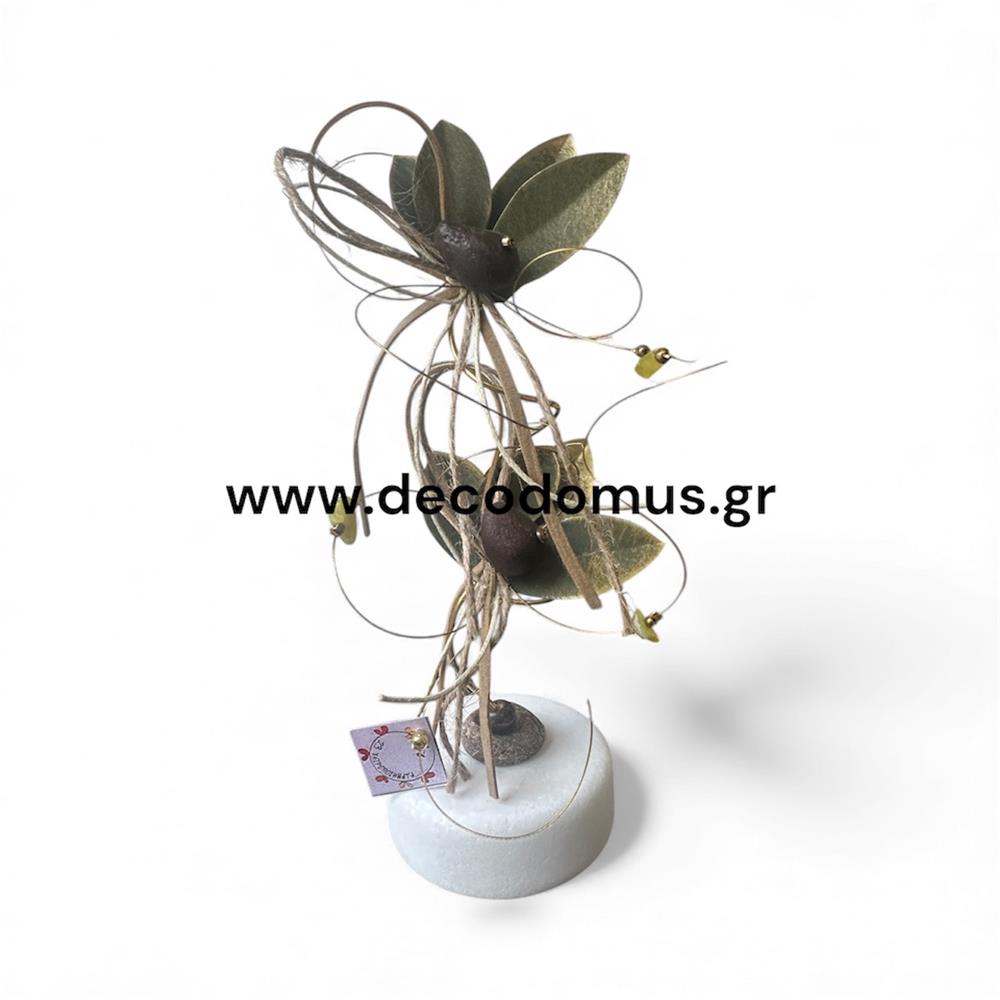 ΚΕΡΑΜΙΚΗ ΕΛΙΑ ΜΕ ΜΕΤΑΛΛΙΚΑ ΦΥΛΛΑ ΣΕ ΣΤΡΟΓΓΥΛΗ ΜΑΡΜΑΡΙΝΗ ΒΑΣΗ Μέταλλο Φ0.06*Υ0.17