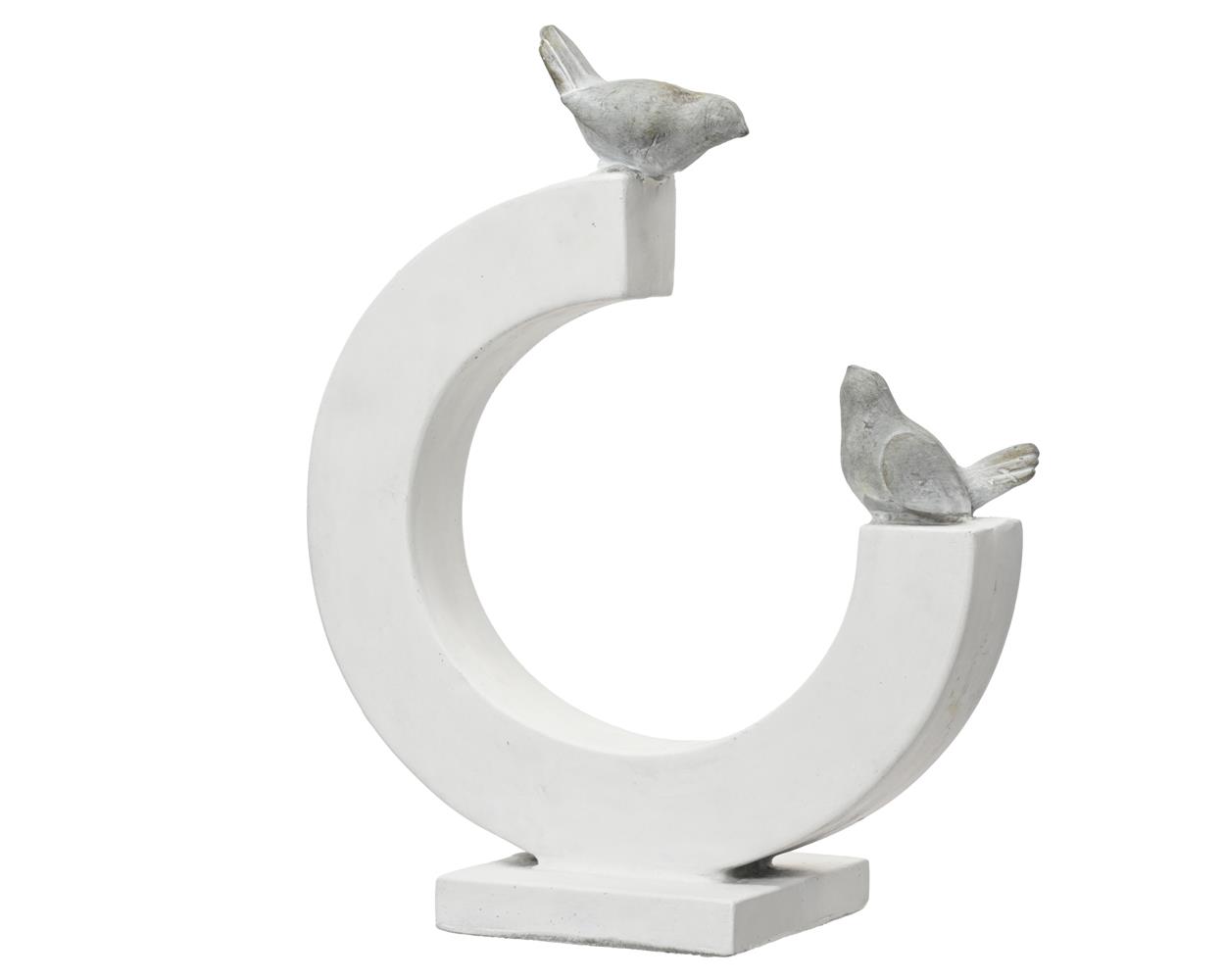 Μια γαλήνια όαση αναδύεται με αυτό το μοντέρνο γλυπτό πουλιού, προσκαλώντας ηρεμία και θαυμασμό στον κήπο ή στο μπαλκόνι. Αυτό το χειροποίητο γλυπτό εξωτερικού χώρου, με κομψό ημικυκλικό σχήμα ύψους 54 cm, τραβάει την προσοχή με το κομψό, λευκό πολυμαγνήσιο και το διακριτικό φινίρισμα με σπρέι. Ο μινιμαλιστικός σχεδιασμός προσθέτει μια καλλιτεχνική πινελιά σε κάθε εξωτερικό χώρο.