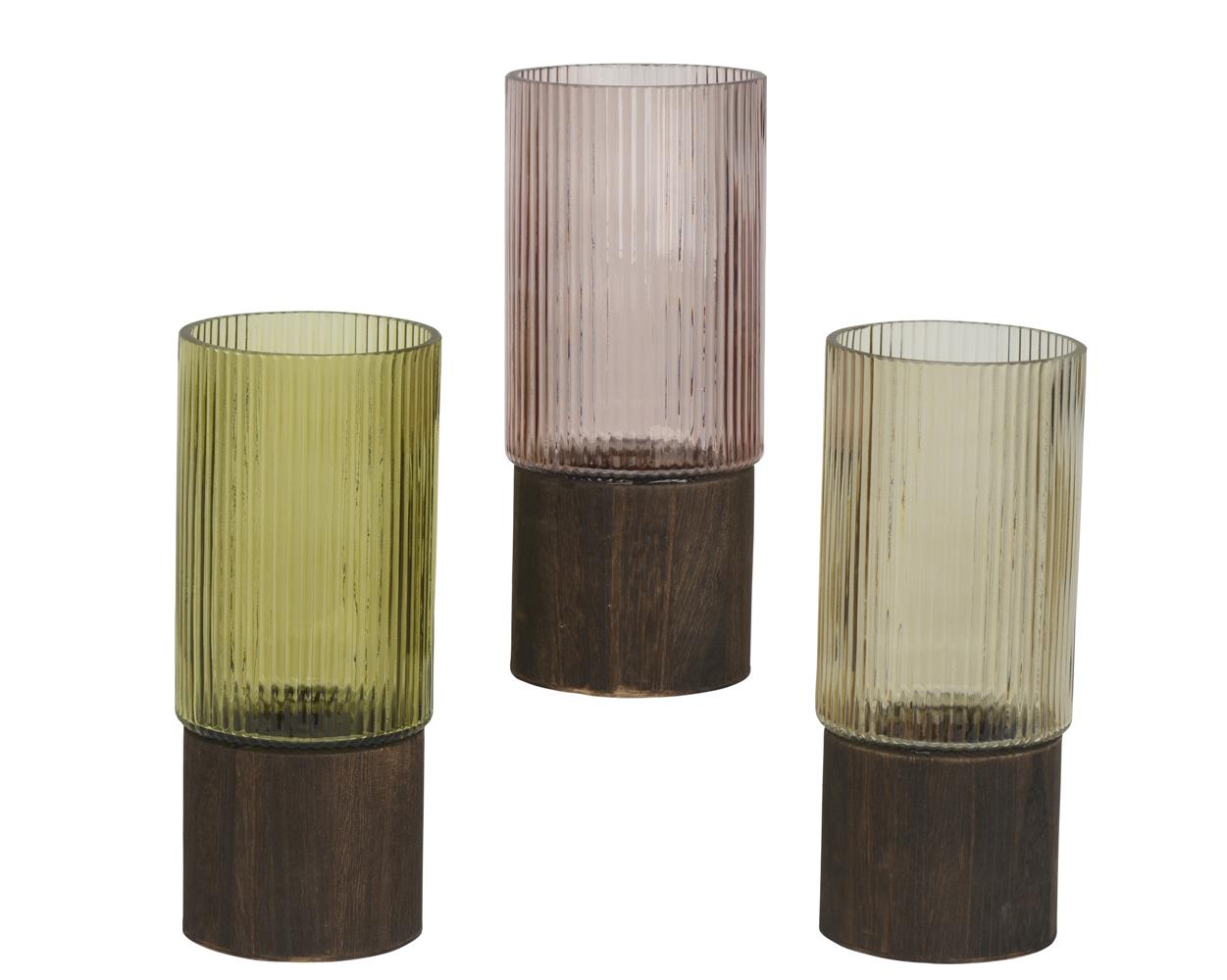 \"Γυάλινο φανάρι Decoris με ξύλινη βάση σε 3 χρώματα