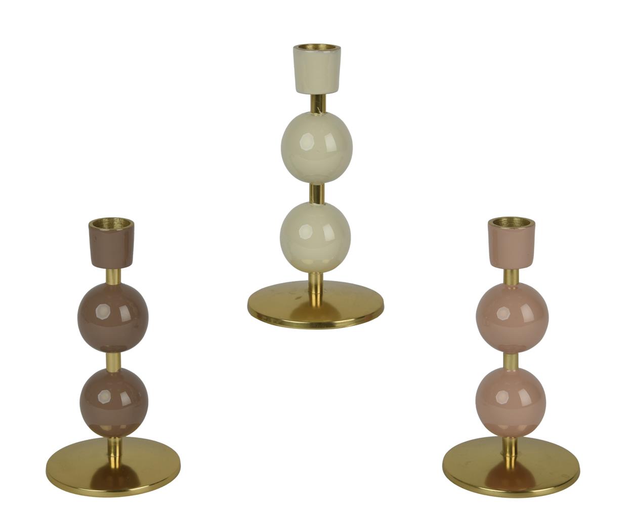Φέρτε μια ζεστή και φιλόξενη ατμόσφαιρα στο σπίτι σας με αυτό το όμορφο σετ τριών κεριών από την Decoris. Κάθε χειροποίητο κομμάτι διαθέτει ένα παιχνιδιάρικο σχέδιο με στρογγυλές, λακαρισμένες σφαίρες σε διάφορα απαλά χρώματα, τοποθετημένες σε μια κομψή χρυσή βάση. Ο συνδυασμός σιδήρου υψηλής ποιότητας με γυαλιστερό σμάλτο προσφέρει μια διακριτική, πολυτελή εμφάνιση που ταιριάζει απόλυτα σε έναν μοντέρνο ή σύγχρονο εσωτερικό χώρο. Αυτά τα κεριά σχηματίζουν ένα ατμοσφαιρικό κεντρικό στοιχείο σε ένα τραπέζι, μπουφέ ή ανοιχτό ράφι.