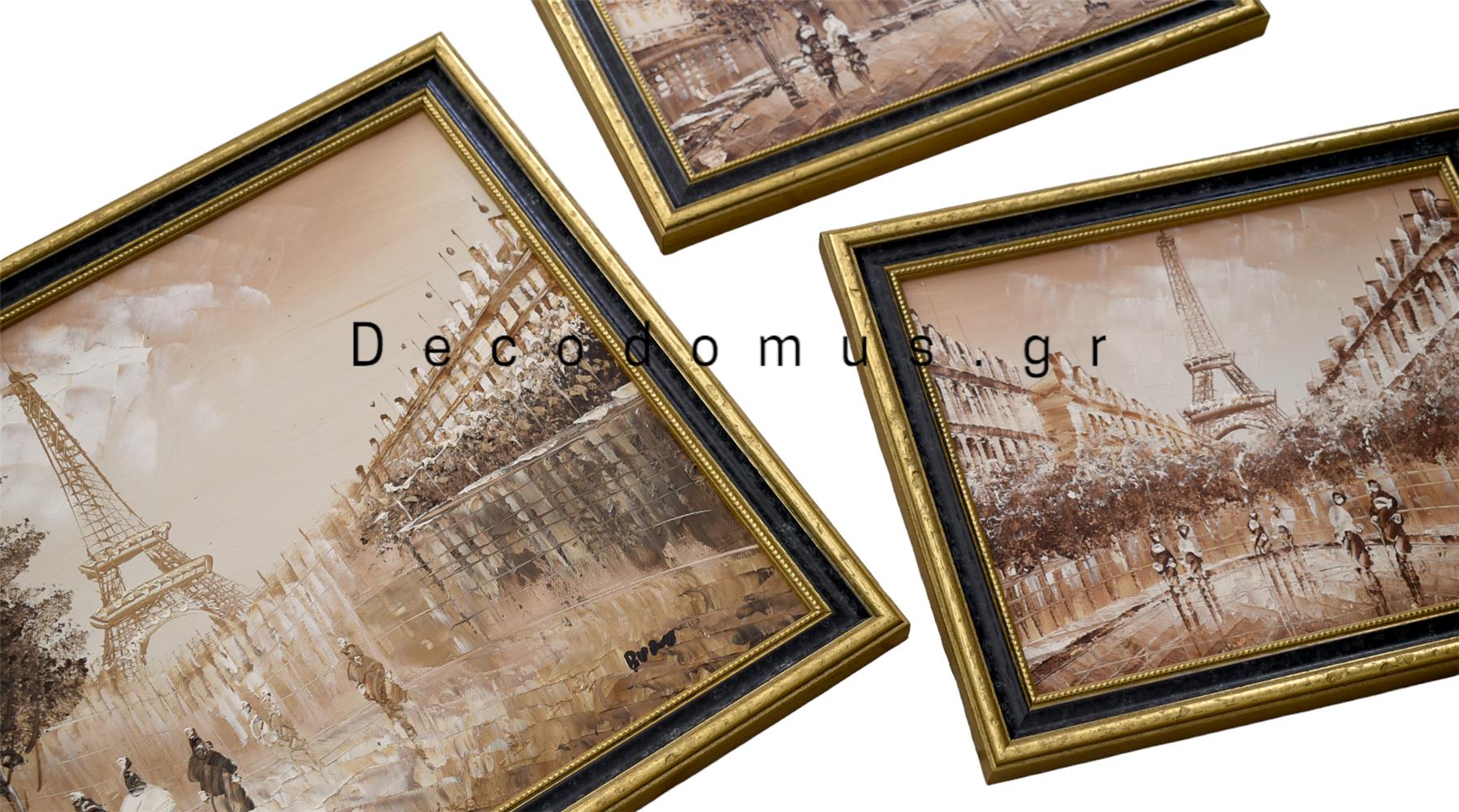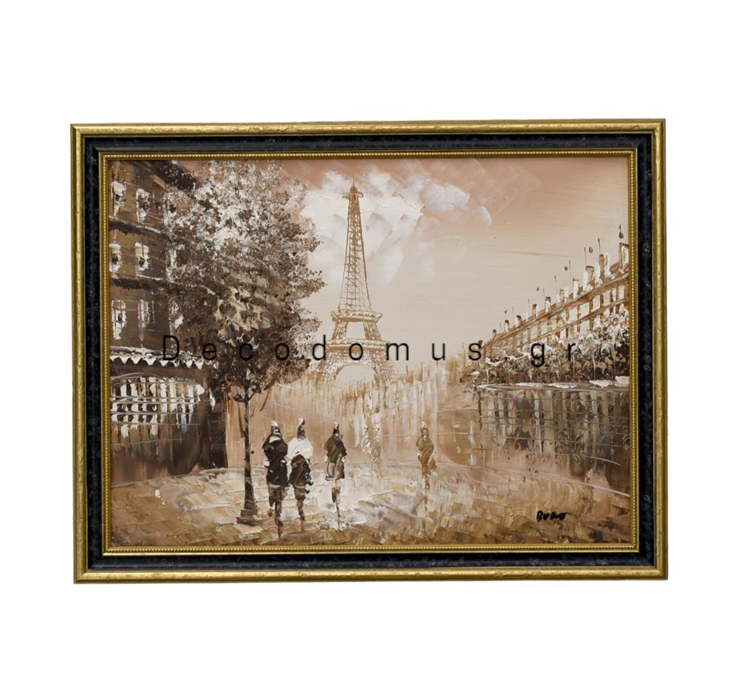 ΠΙΝΑΚΑΣ ΖΩΓΡΑΦΙΚΗΣ ΕΛΑΙΟΓΡΑΦΙΑ ΠΥΡΓΟΣ ΤΟΥ ΑΙΦΕΛ ΜΕ ΞΥΛΙΝΗ ΜΑΥΡΗ ΚΟΡΝΙΖΑ ΜΕ ΧΡΥΣΟ Ξύλο 45*35