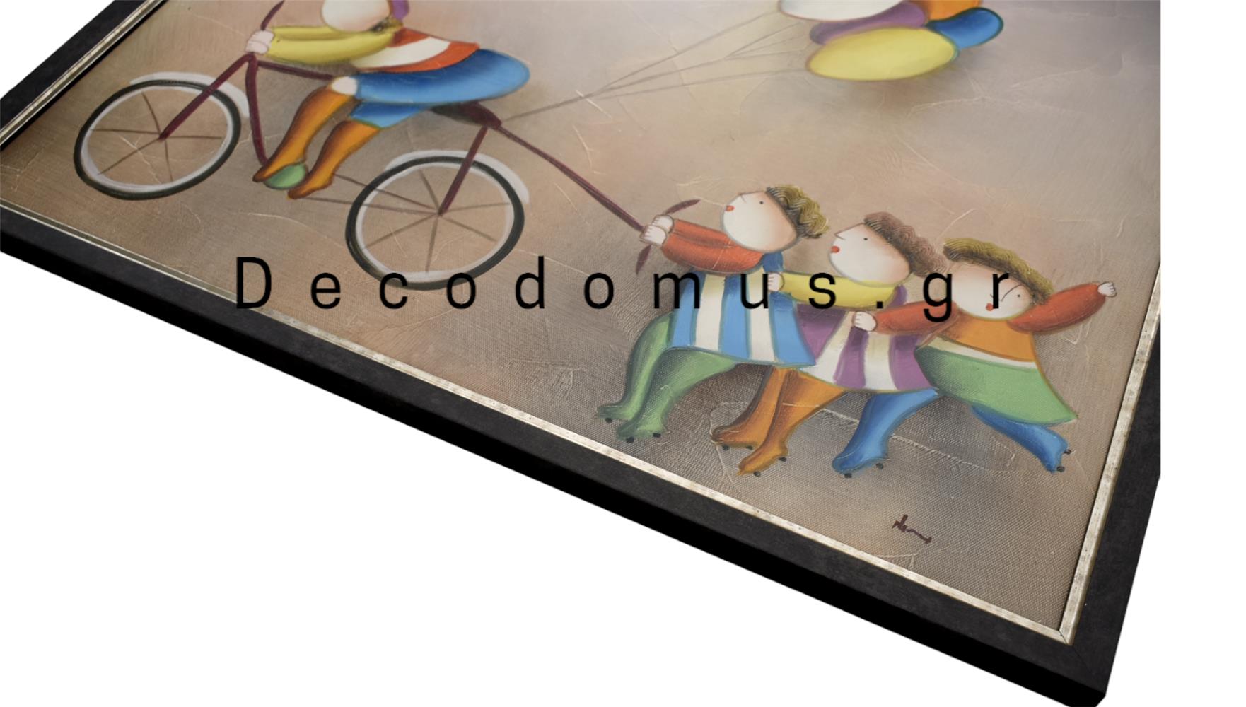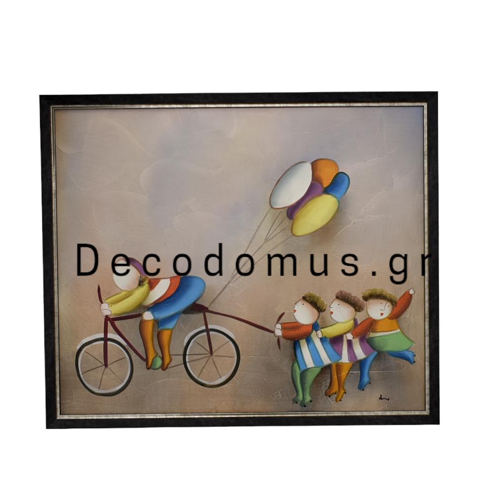 Πίνακας χειροποίητος με ποδήλατο και δυό μπαλόνια.