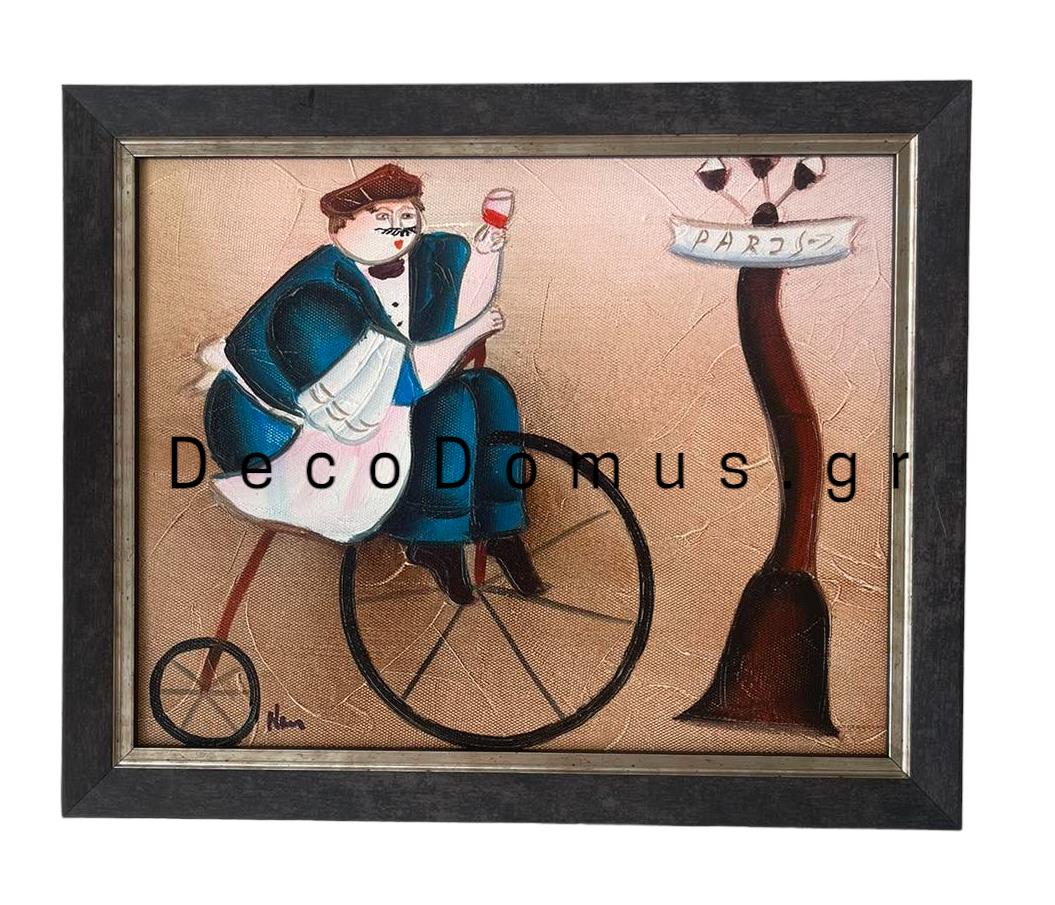 Πίνακας χειροποίητος μάγειρας με ποδήλατο.