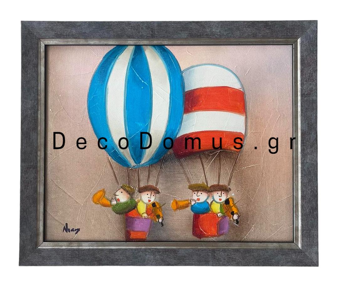 Πίνακας χειροποίητος δύο αερόστατα και τέσσερα μουσικά όργανα.