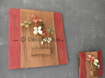 ΞΥΛΙΝΟΣ ΧΕΙΡΟΠΟΙΗΤΟΣ ΠΙΝΑΚΑΣ ΜΕ ΠΟΛΥΧΡΩΜΑ ΜΕΤΑΛΛΙΚΑ ΛΟΥΛΟΥΔΙΑ ΑΠΟ ΟΡΕΙΧΑΛΚΟ 40Χ40 ΕΚ Ξύλο Μ0.40Π0.06Υ0.40