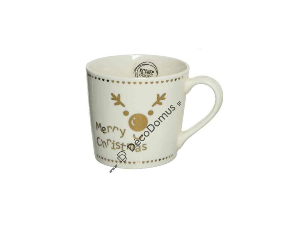 ΚΟΥΠΑ ΛΕΥΚΗ ΜΕ ΧΡΙΣΤΟΥΓΕΝΝΙΑΤΙΚΟ ΘΕΜΑ \"MERRY CHRISTMAS\" KAEMINGK Πορσελάνη 13.5*9.7-Υ4