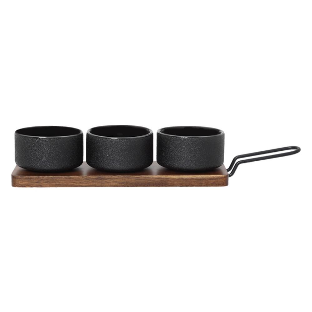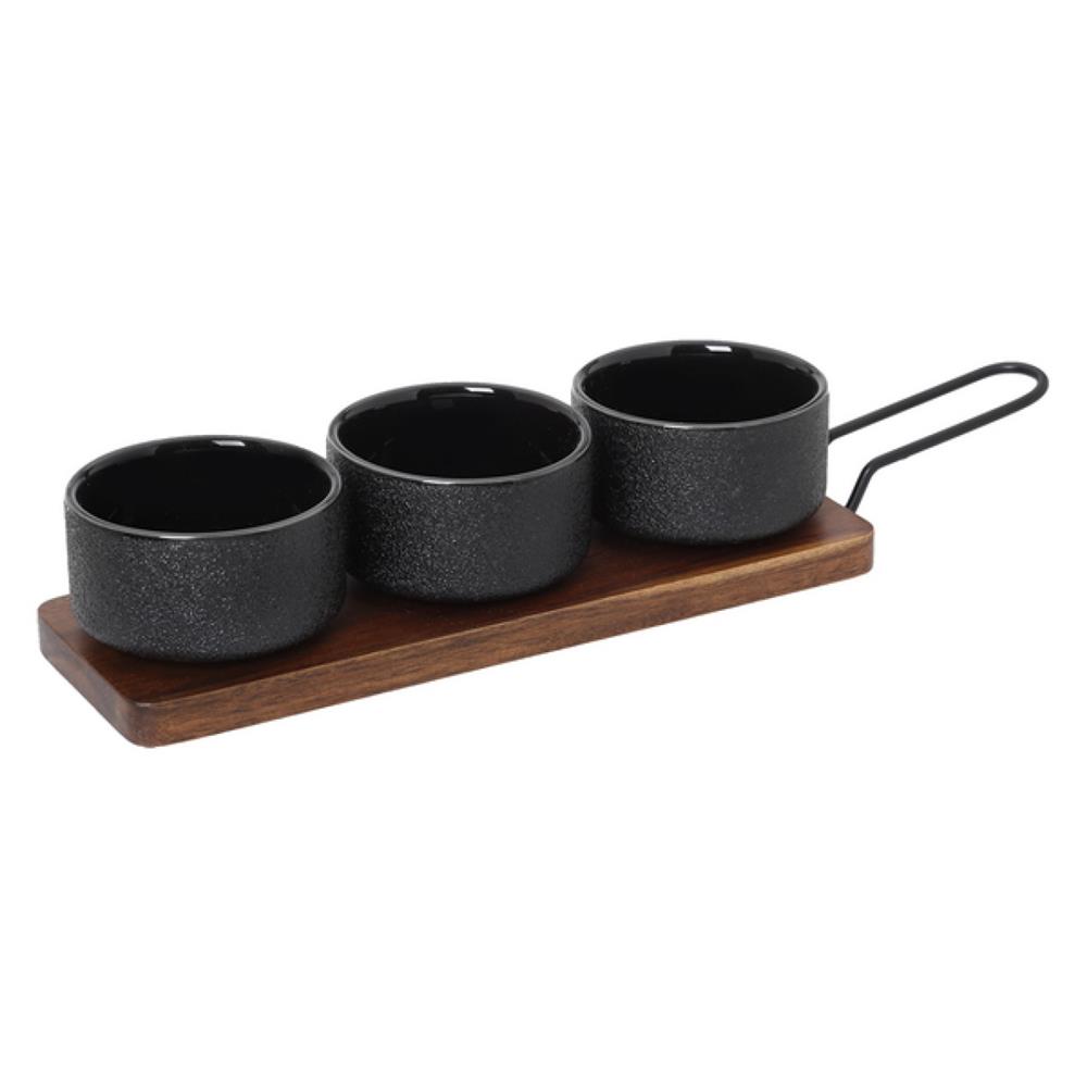 ACACIA ΣΕΤ ΜΠΟΛ STONEWARE 3 ΤΕΜΑΧΙΩΝ ΣΕ ΞΥΛΙΝΗ ΒΑΣΗ ΜΕ ΜΕΤΑΛΛΙΚΗ ΛΑΒΗ Stoneware Μ0.28Π0.10Υ0.06