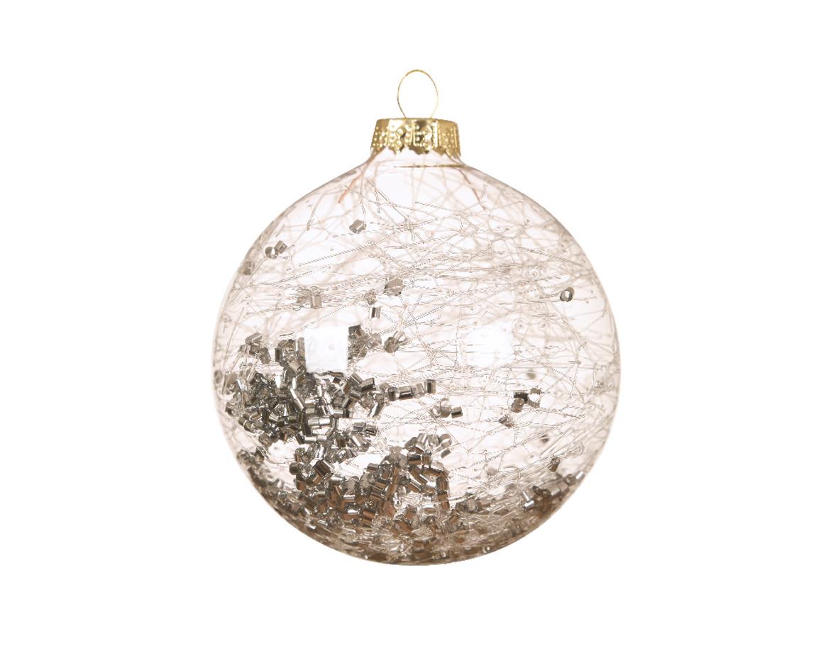 CHRISTMAS GLASS BAUBLE WITH FIBER dia 8cm SILVER- KAEMINGK 8*8*H8