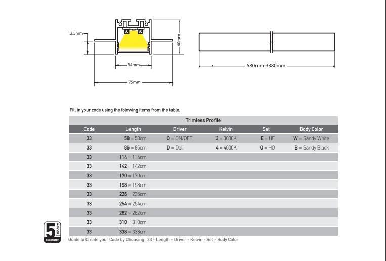 TRIMLESS PROFILE BLACK FOR LINEAR LIGHTING WITH DALI DRIVER WITH 5 YEARS GUARANTEE Aluminium 58x7.5xh4