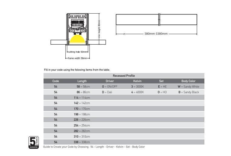 RECESSED PROFILE WHITE FOR LINEAR LIGHTING WITH DALI DRIVER WITH 5 YEARS GUARANTEE Aluminium 58x5.8xh8