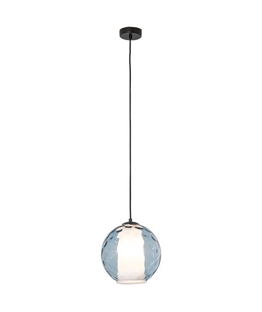 PENDANT LED LIGHT WITH RELIEF GLASS AND OPAL GLASS INSIDE WITH BLUE TRANSPARENT GLASS Glass 25.5x25.5xh26.5