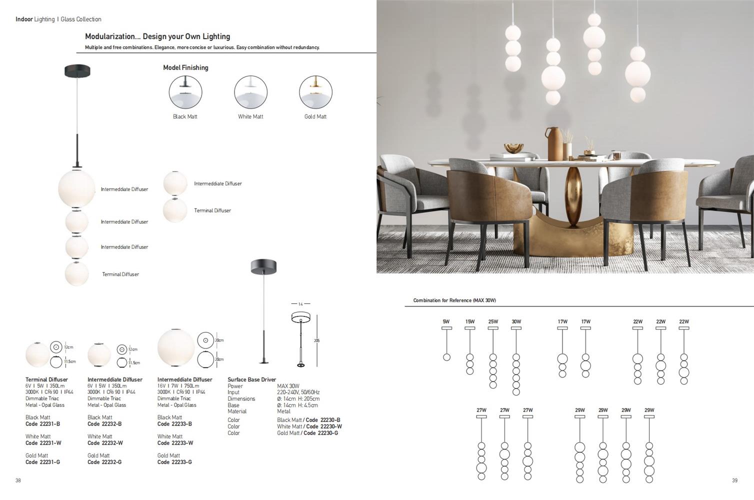 INTERMEDIATE DIFFUSER WHITE OPAL LED WITH BLACK MATT DETAIL Metal D12
