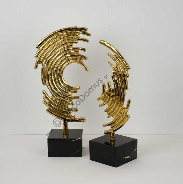HANDMADE DECORATIVE GOLDEN SEMI-CIRCLES WITH MARBLE BASE Brass 11.5x10xh35
