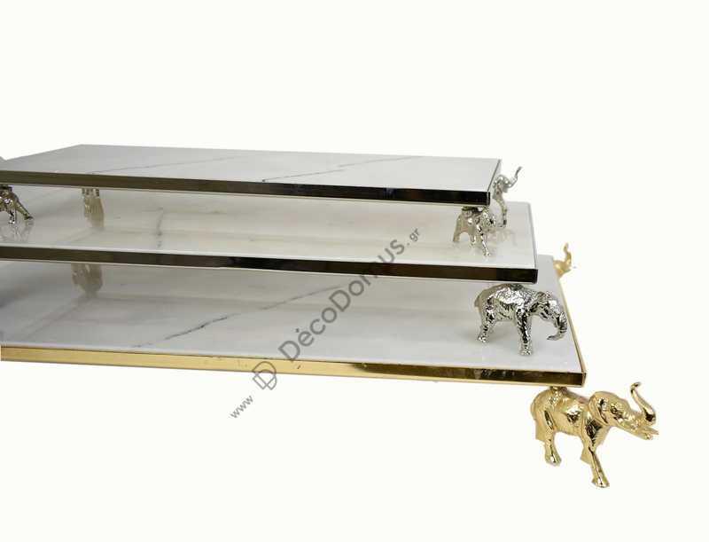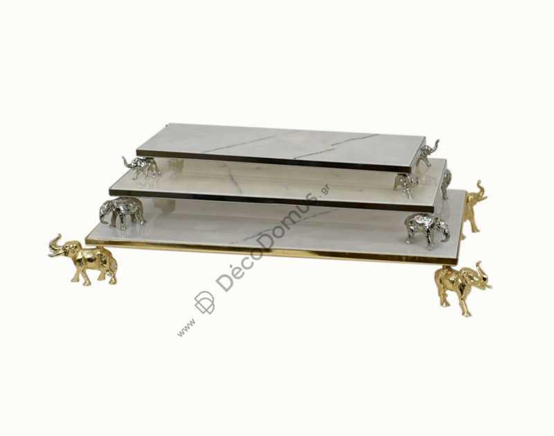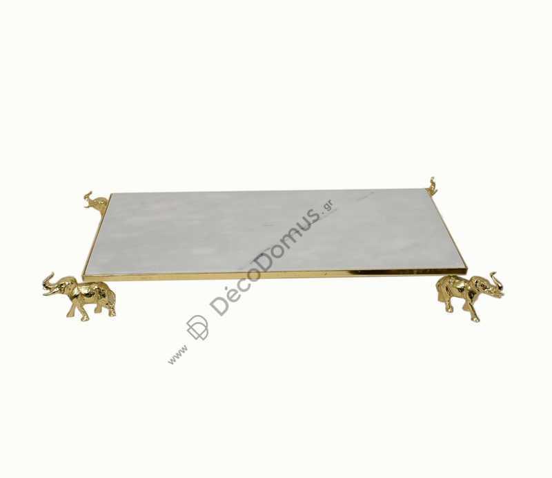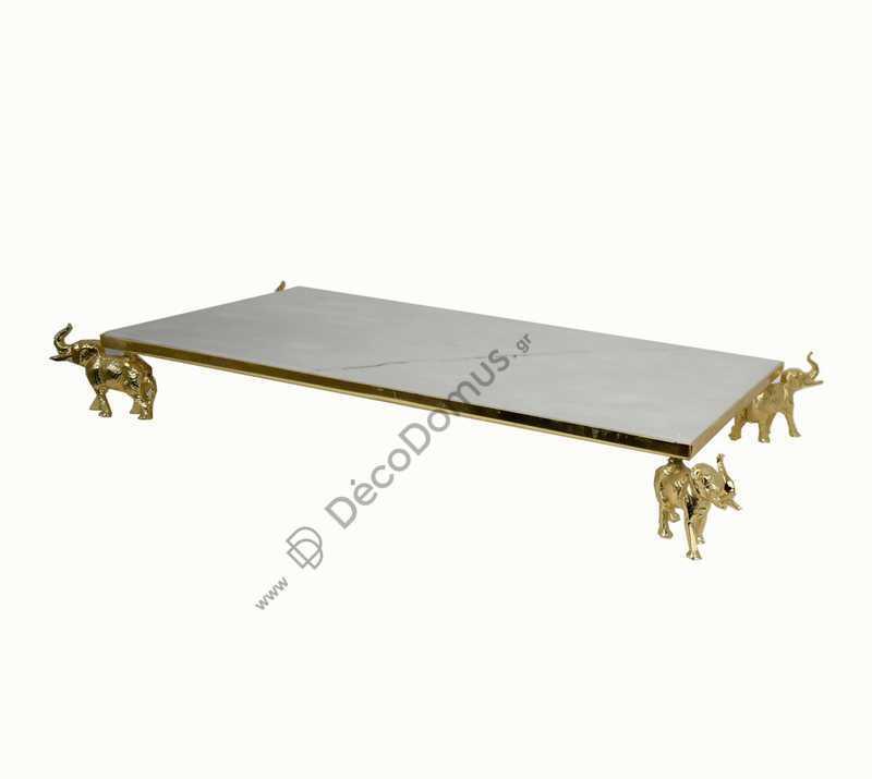HANDMADE DECORATIVE GOLDEN TRAY WITH ELEPHANT FOOT Brass 58x34xh9