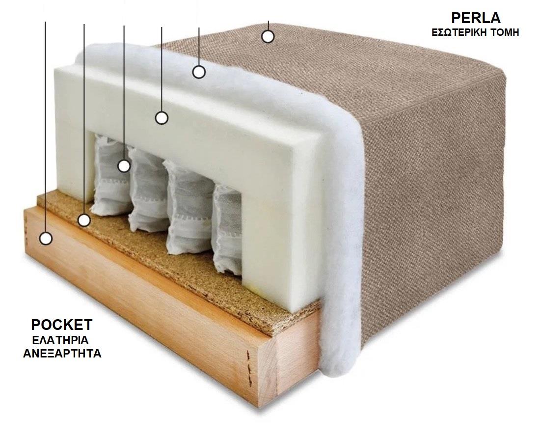 Three-seater sofa with storage space and bed. By pulling the seat forward we have the storage space under it and by dropping the back a double bed is created with dimensions of 200x145 cm. The core of the seat and bed consists of independent pocket springs, offering absolute sitting comfort, restful and orthopedic sleep. Frame reinforced with solid beech wood for greater durability. Modern design, high quality, useful and functional, also ideal for professional premises.