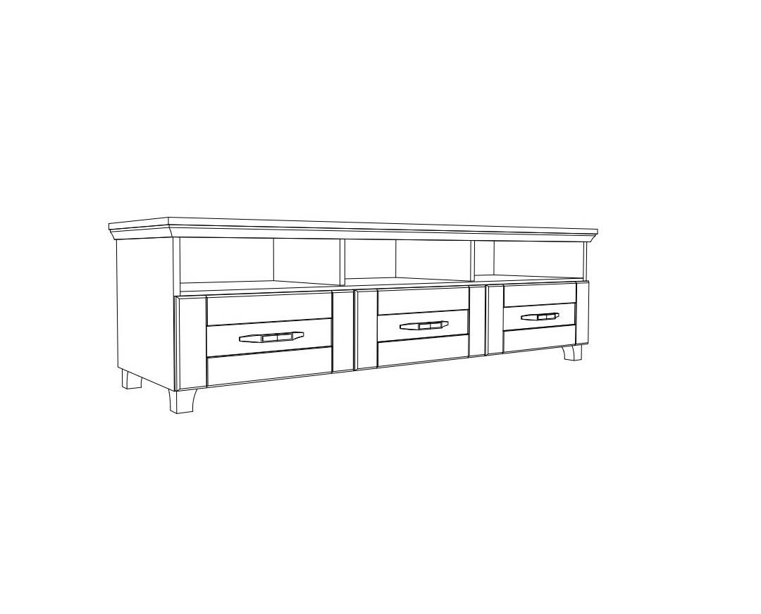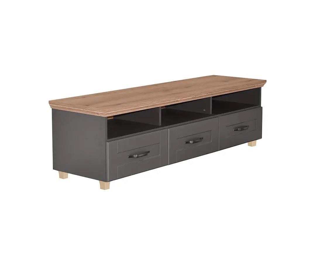 TV cabinet in modern Rustikstill, with 3 deep drawers with telescopic mechanisms and 3 cells - storage frames above the drawers.