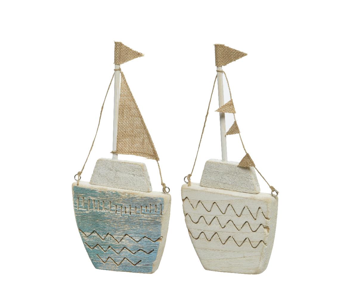 WOODEN SAILING BOAT IN 2 COLOURS Wood 3.5*14*H34.5