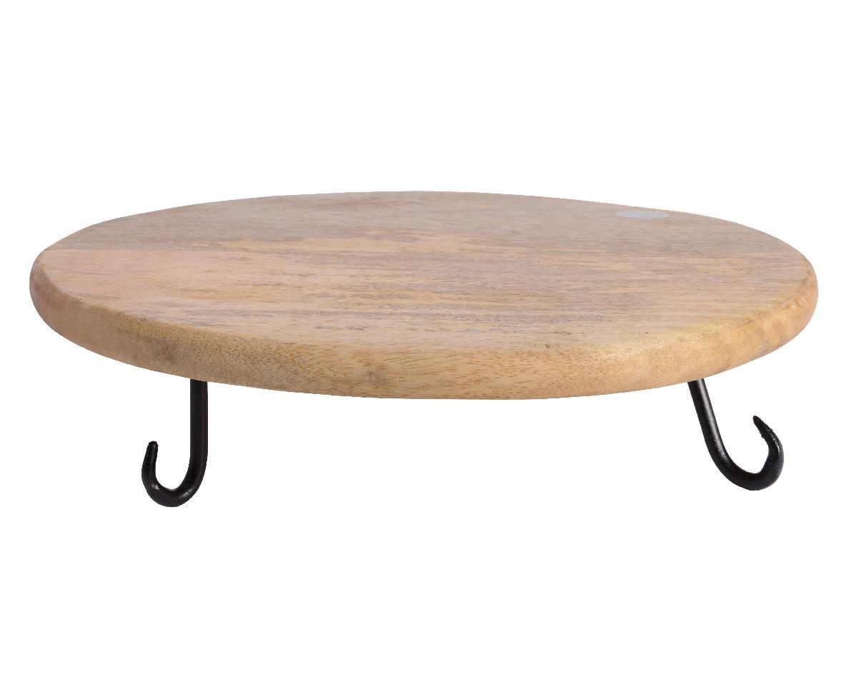 WOODEN PLATTER WITH LEG METALLIC LARGE Metal dia40*8h