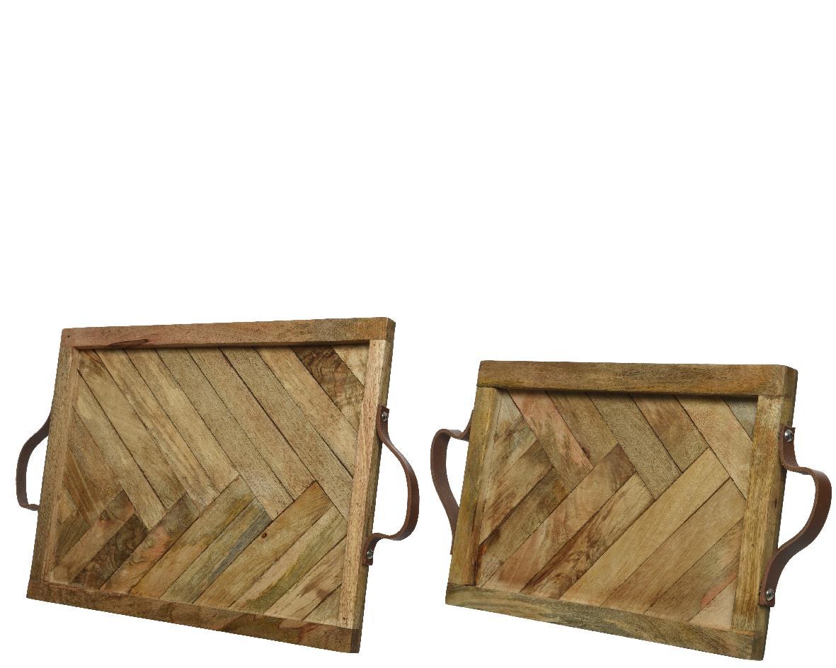 WOODEN TRAY WITH LEATHER HANDLES LARGE Wood 67*41.5*3