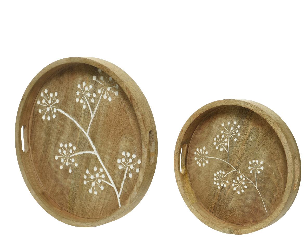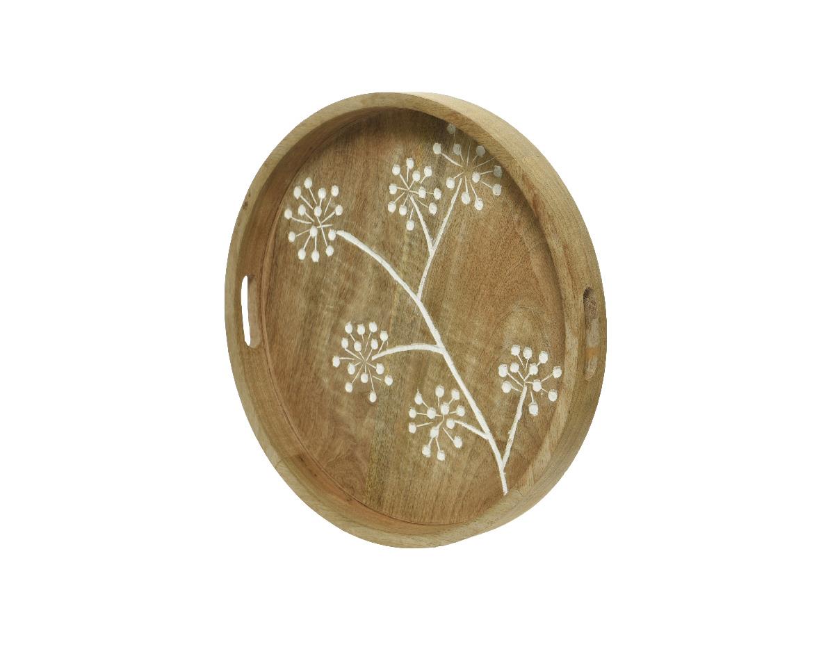 WOODEN TRAY WITH EMBOSSED FLOWERS LARGE Wood dia40*5Η