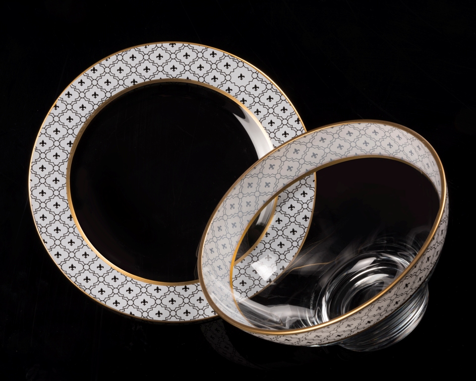 PLATTER WITH WHITE BLACK GOLD DESIGNS FIRENZE Crystal Φ31*1,5