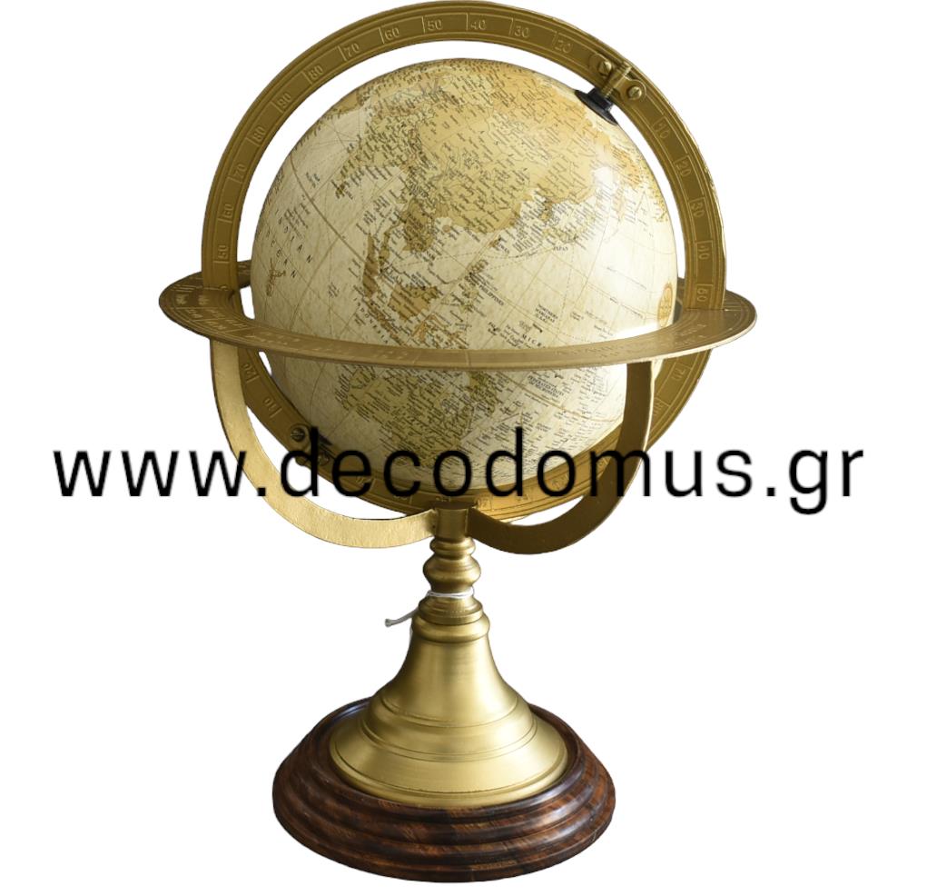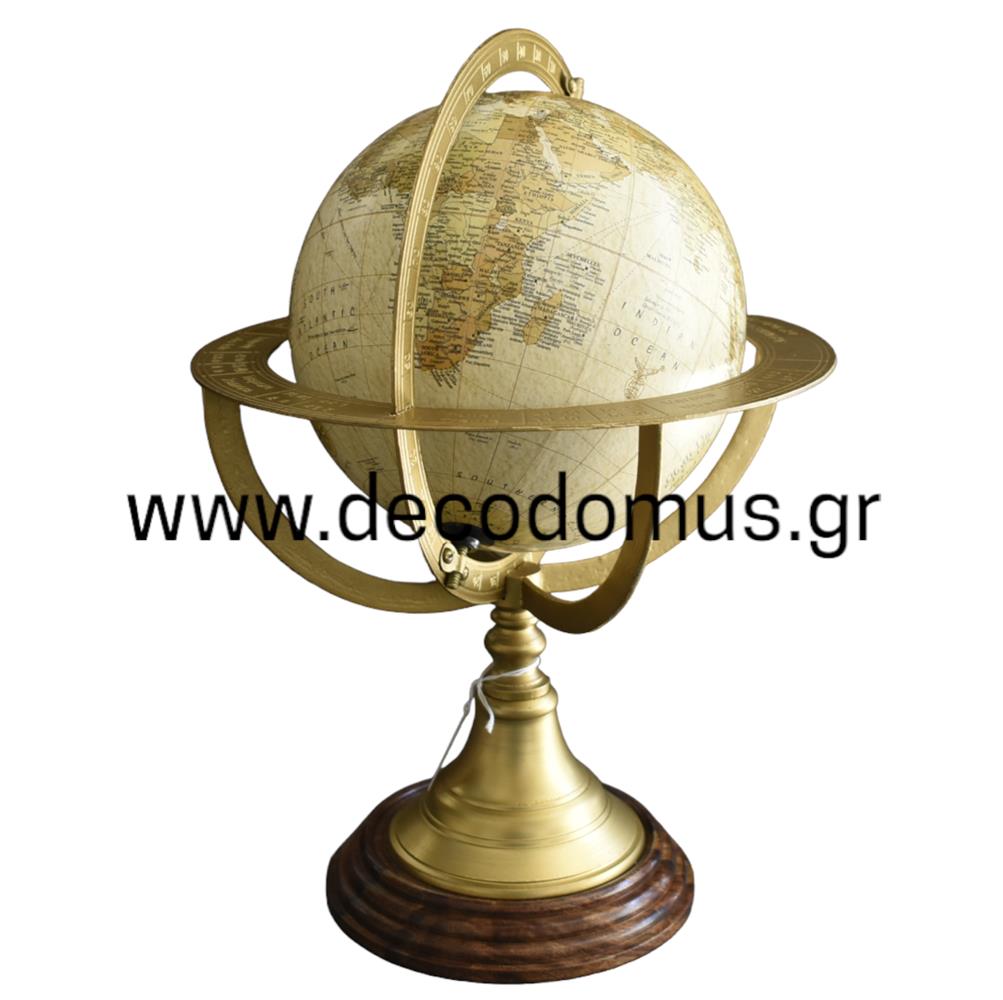 IVORY GLOBE WITH GOLD IRON BASE AND WOOD Metal DIA24*33H