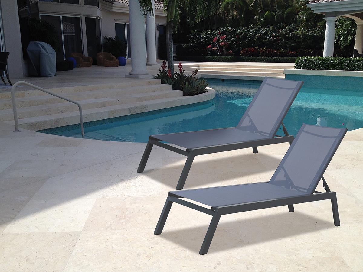 5 Seater Reclining Sun Lounger With Gray Perforated Fabric And Aluminum Frame Fabric