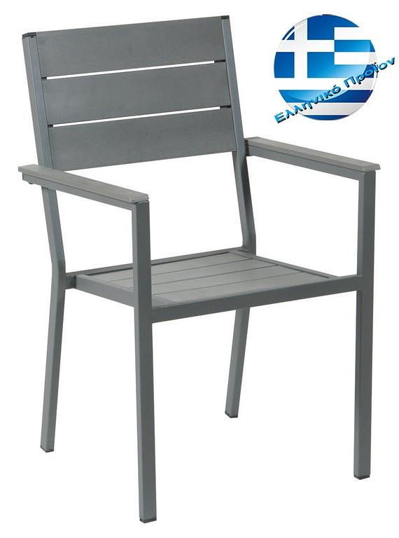 Stackable Aluminum Armchair With Gray Pollywood Aluminum 54*56*90