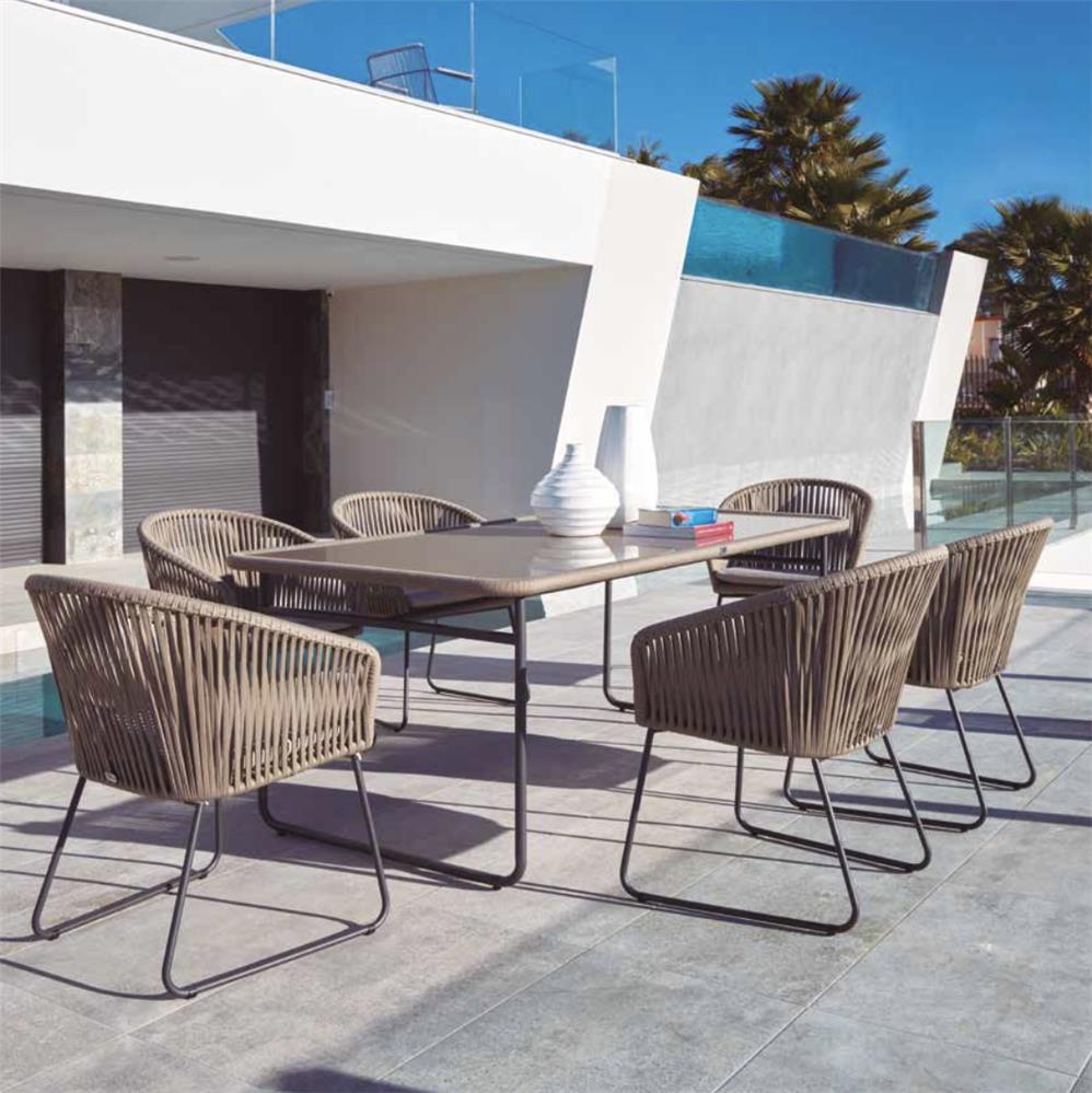 Outdoor dining table with waterproof fabric & glass - Santana by Joenfa Glass 200 100 75 cm