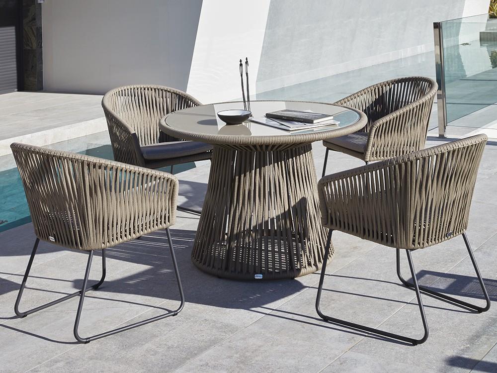 Rotunda-round dining table with waterproof fabric & outdoor glass - Santana by Joenfa Glass o 110 *75 cm