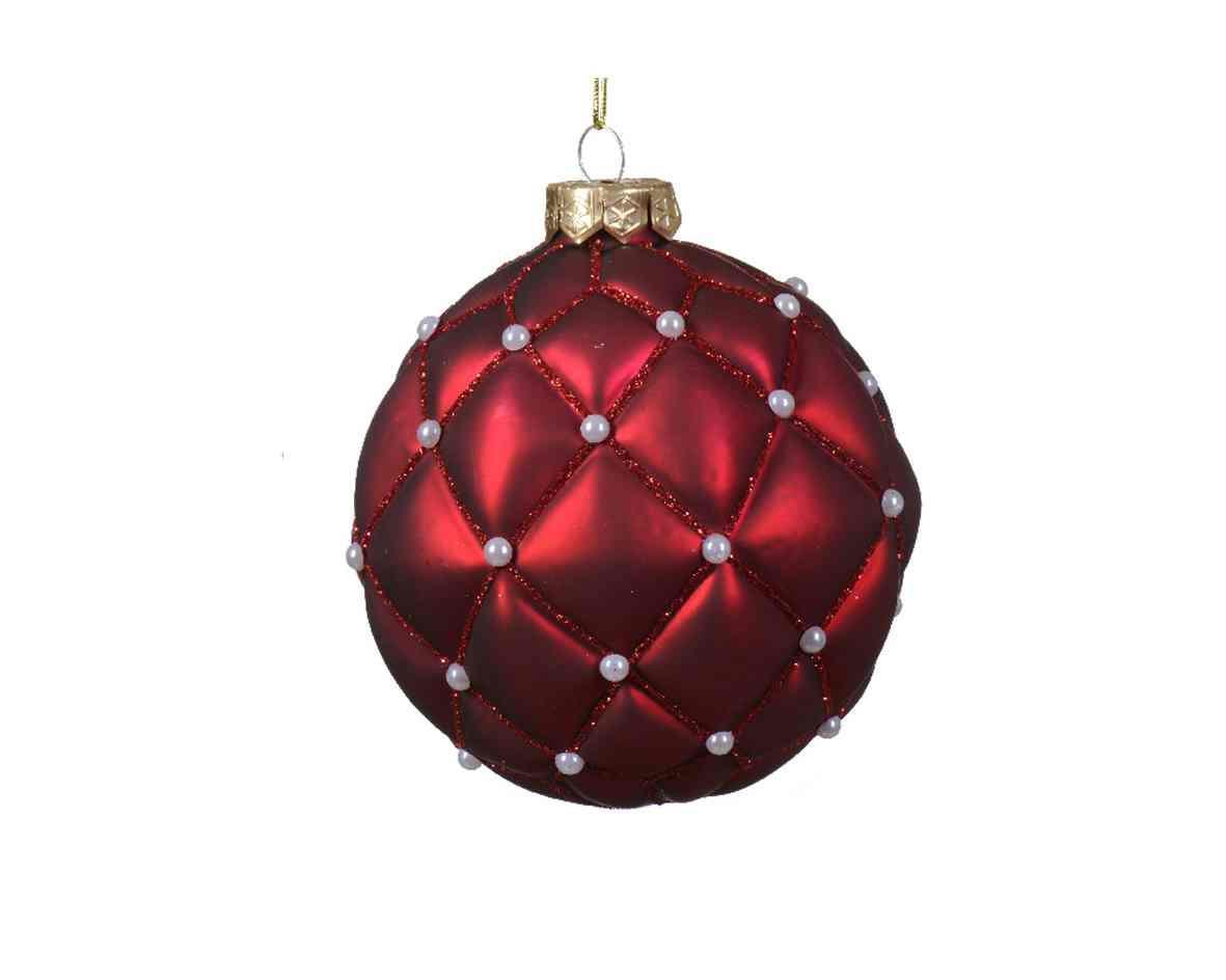 CHRISTMAS ORNAMENT - GLASS BALL RED MAT WITH GRITER AND PEARL Glass DIM 10 CM