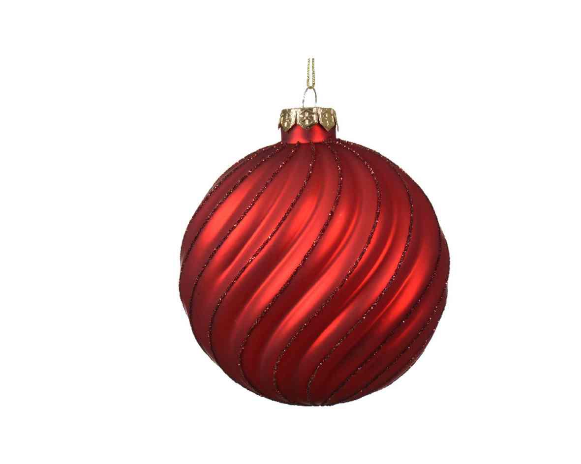 CHRISTMAS ORNAMENT - GLASS BALL RED MAT RELIEF Glass DIM 10 CM