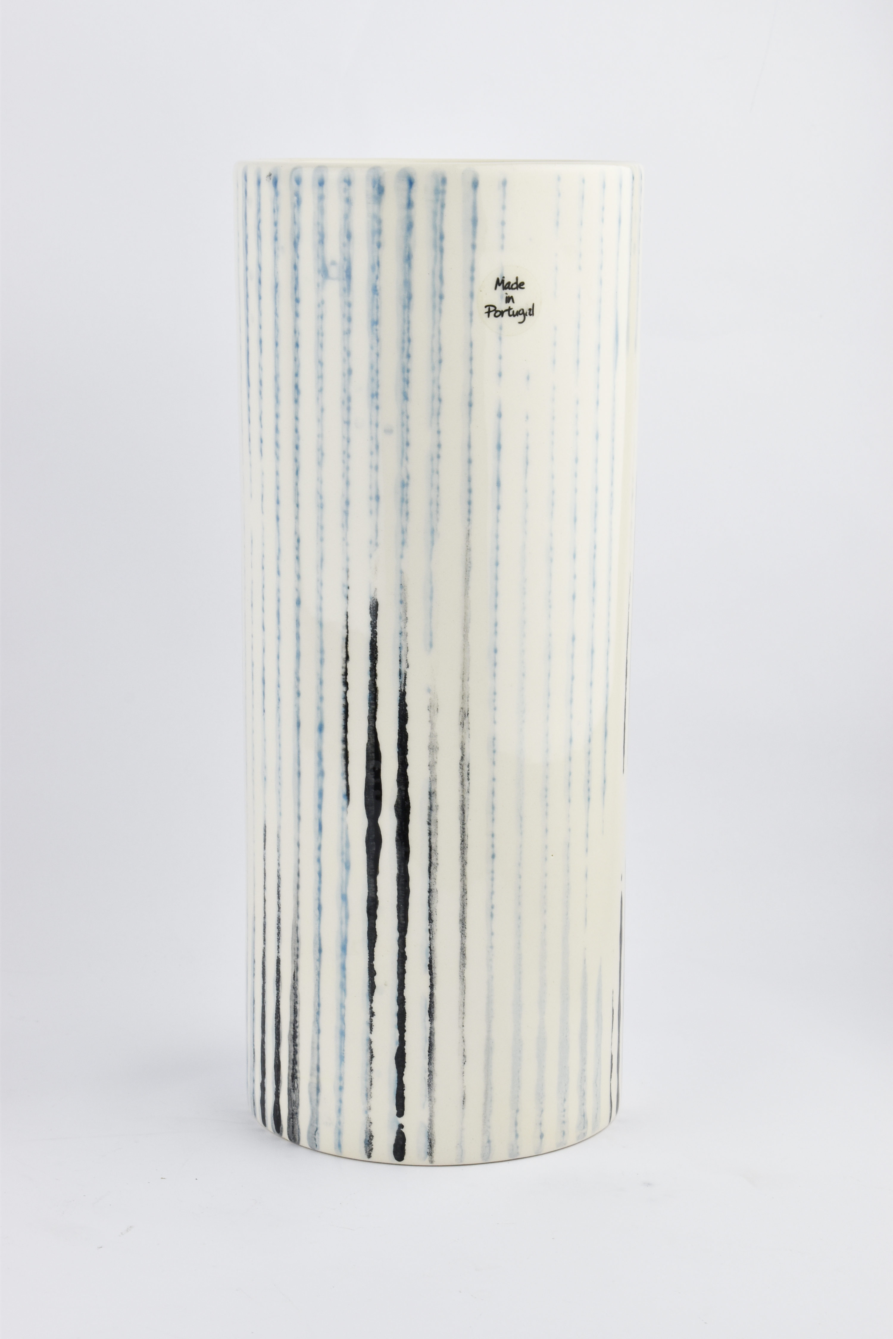 CIRCULAR VASE WITH LIGHT BLUE-GREY-BLACK LINES Made in Portugal - Kaemingk Ceramic Φ12*Η30 cm