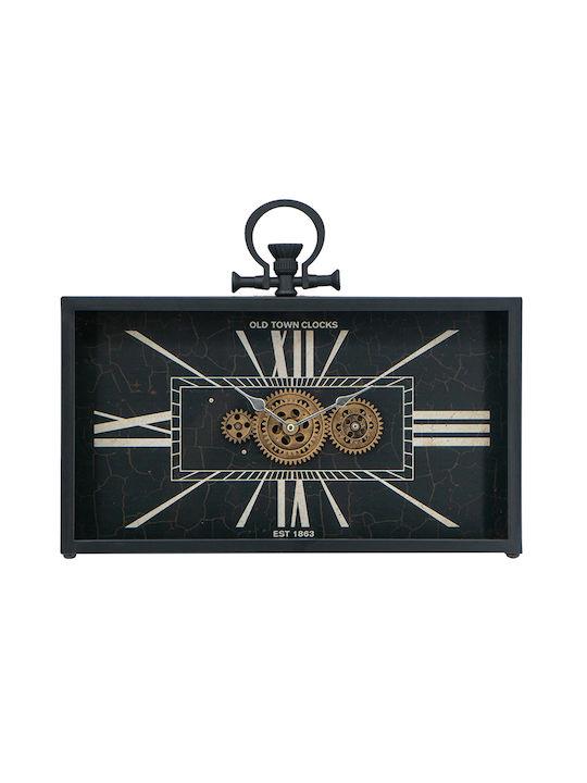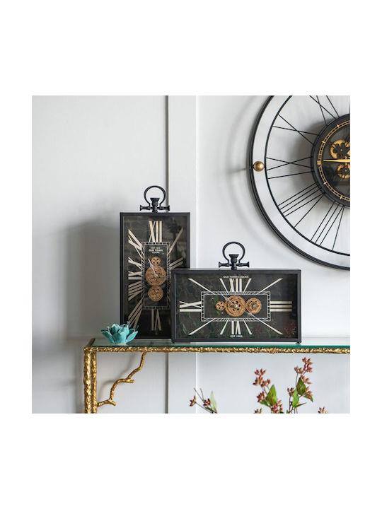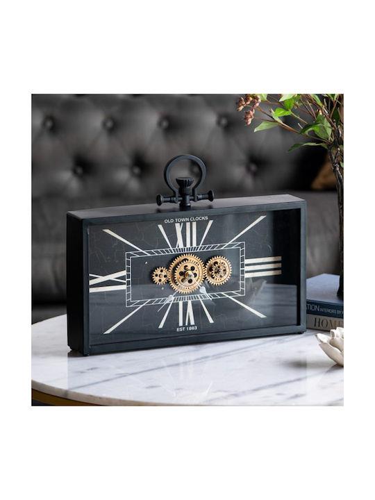 BLACK RECTANGULAR TABLE CLOCK WITH VISIBLE MECHANISM Metal 45*8*H33