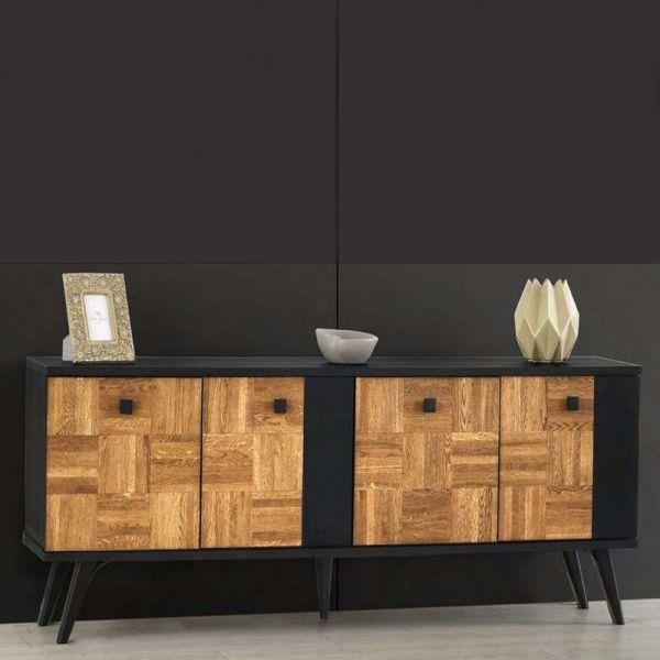 BLACK SIDEBOARD WITH 4 DOORS MOSAIC Wood 192*45*H76