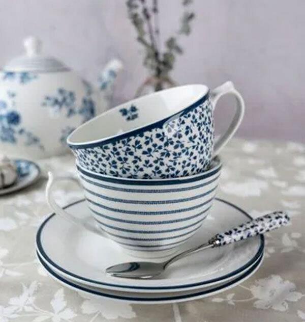 GIFT SET OF 2 TEA CUPS FLORIS AND CANDY STRIPE- BLUEPRINT Porcelain