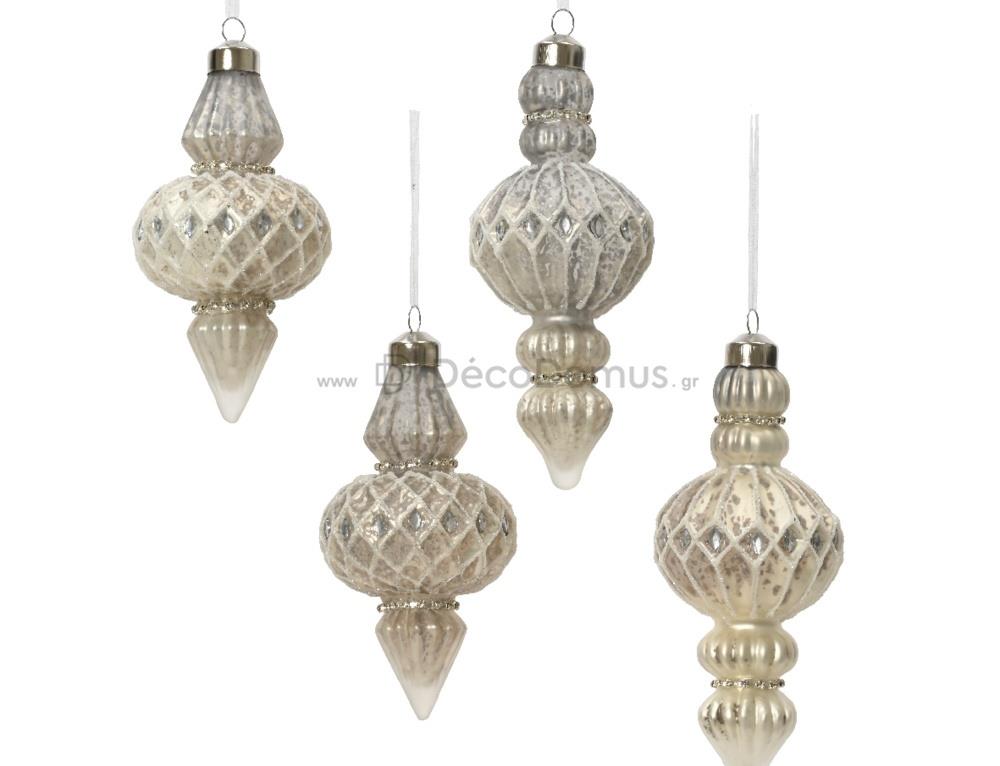 ORNAMENT DIAMOND SILVER WITH GLITTER KAEMINGK Glass 6.5*6.5*14Η