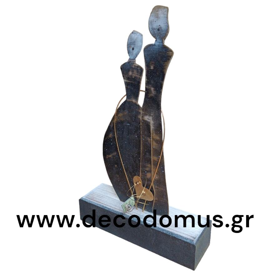 CHARM BLACK WHITE PAIR WITH WOODEN BASE Wood 140*40*210ΗΜΜ
