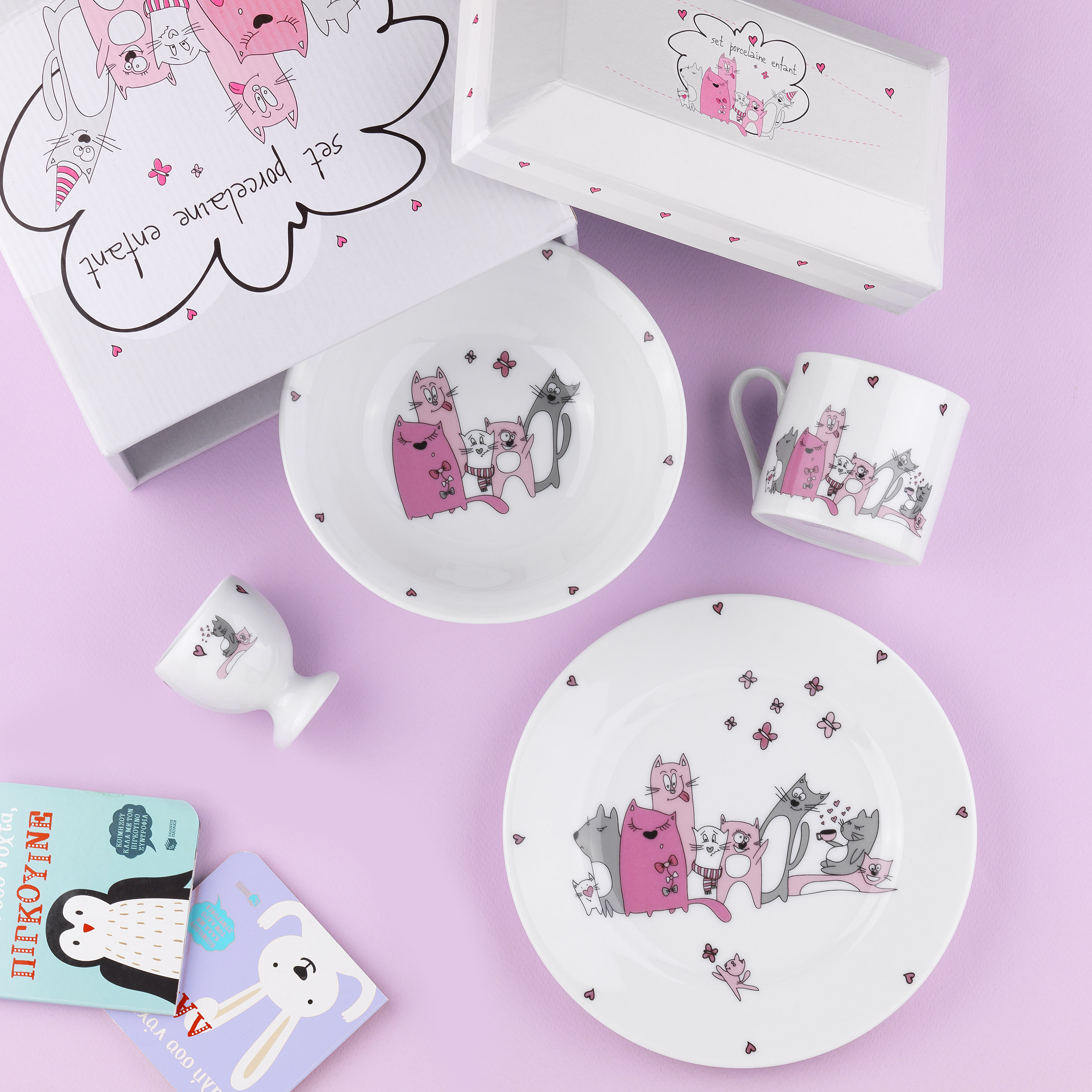 CHILDREN`S DINNER SET 4 PIECES FOR GIRL CATS Porcelain 21*11*19.5