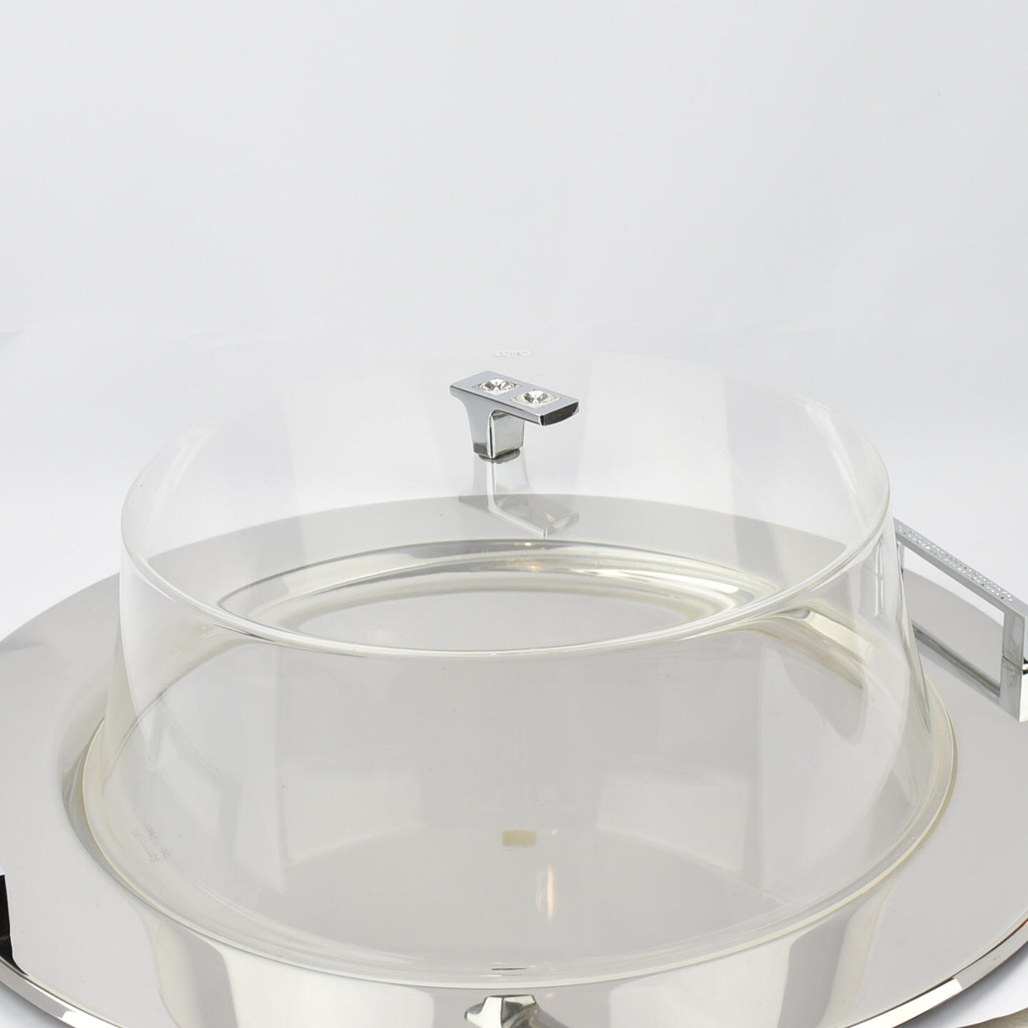 SILVER PLATTER AND COVER WITH SWAROVSKI Plexiglass Φ31.5*14