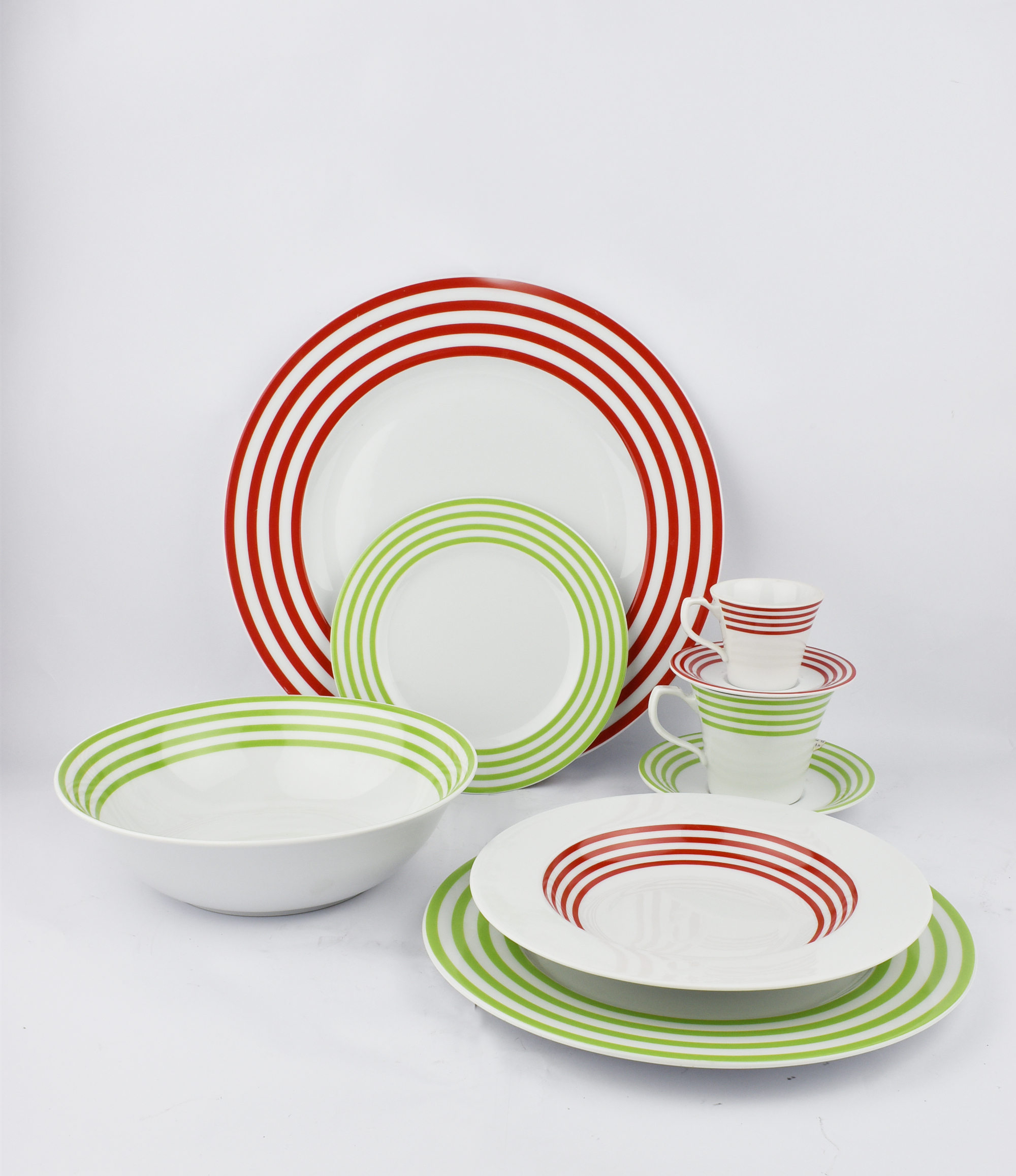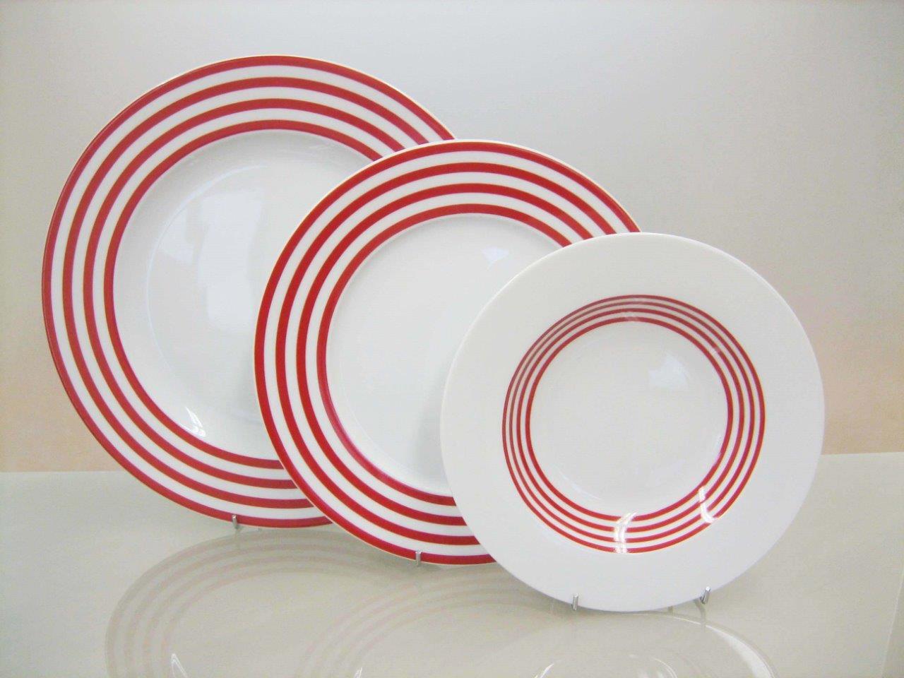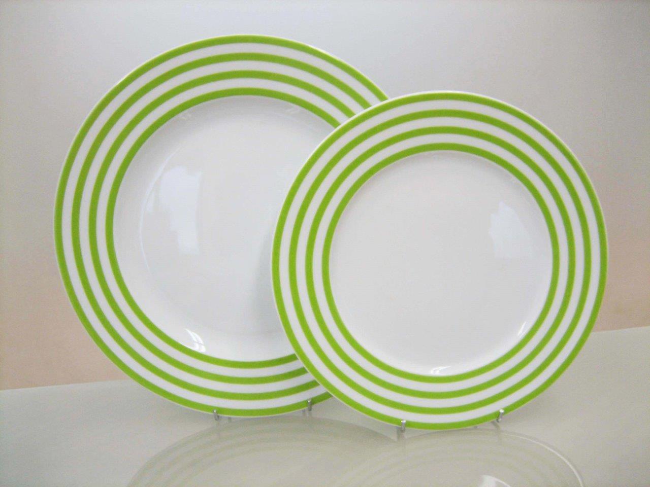 DINNER SET OF 20 PIECES WITH RED AND GREEN STRIPES Porcelain