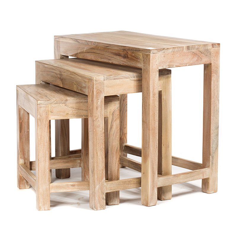 SIDE TABLE ZIGON WITH WHITE PATIN SET 3 PIECES Wood 53*33*53 , 45*30*45 ,34*28*38