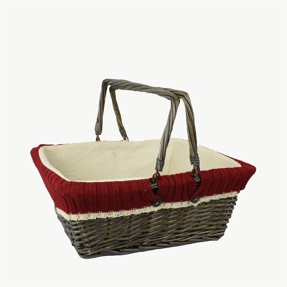 STORAGE BASKET WITH HANDLE AND RED FABRIC Wood 40*32*16