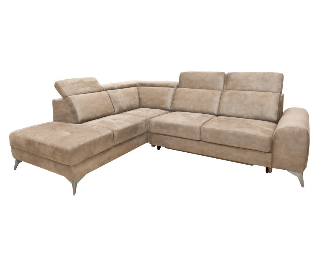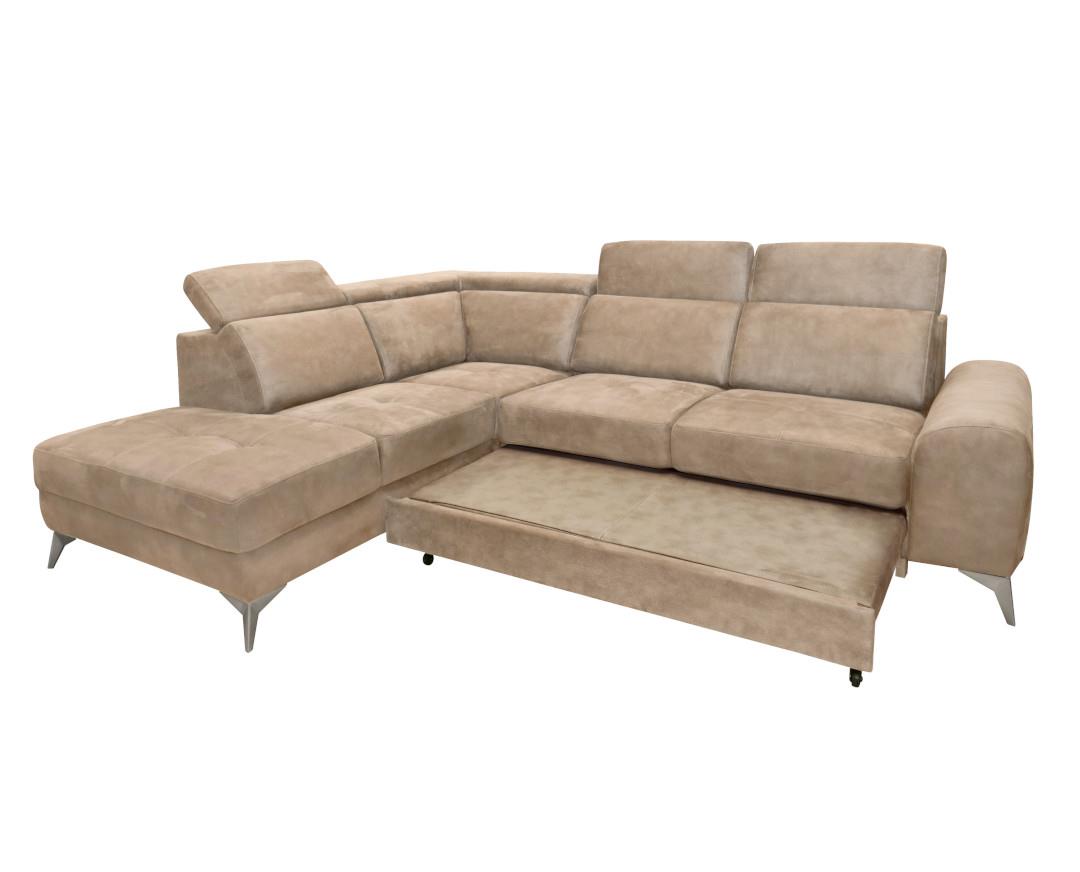 Corner sofa with bed Diego Beige right side 288x230x102cm. Melamine L2.88W2.3H0.85