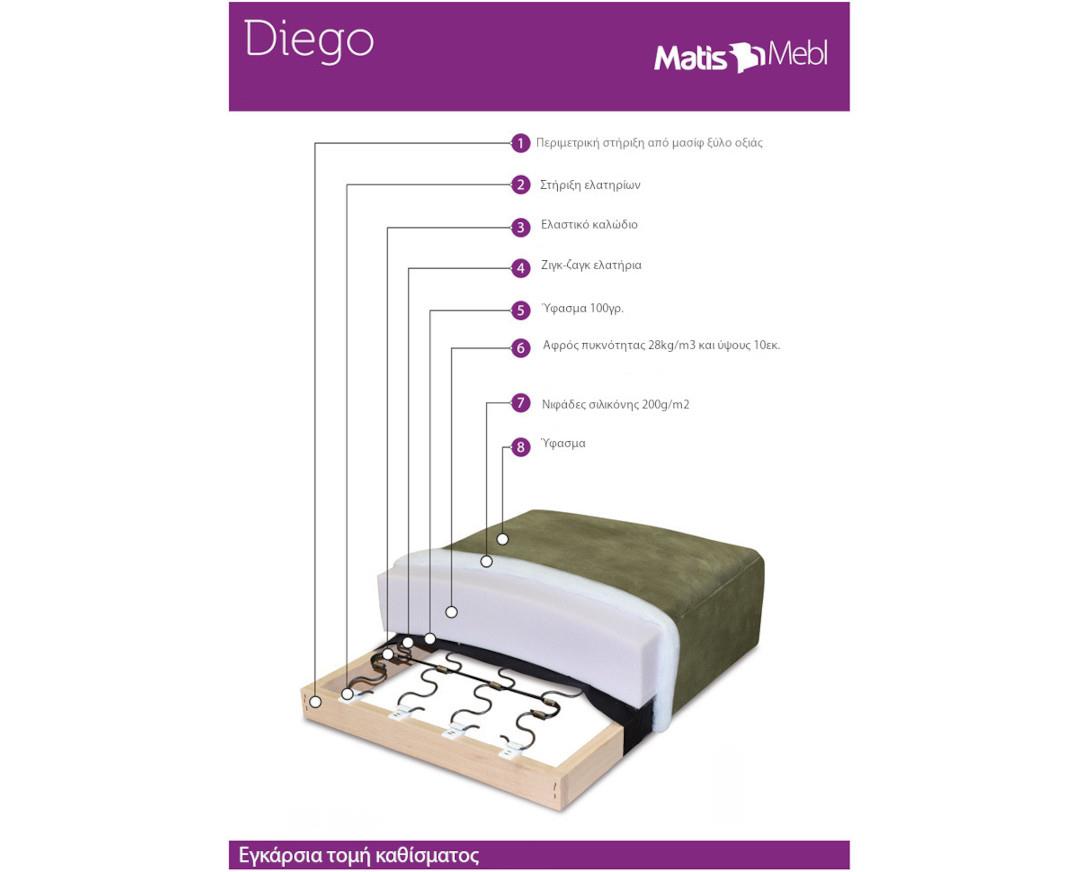The Diego sofa combines functionality with luxury and refinement. Its seats are made slightly higher and deeper than usual, thus ensuring more comfort. The headboards have mechanisms that adjust to the desired inclination. And the comforts of the couch don\'t stop there! Opening the 200x122cm bed. you also enjoy moments of relaxation in your living room.