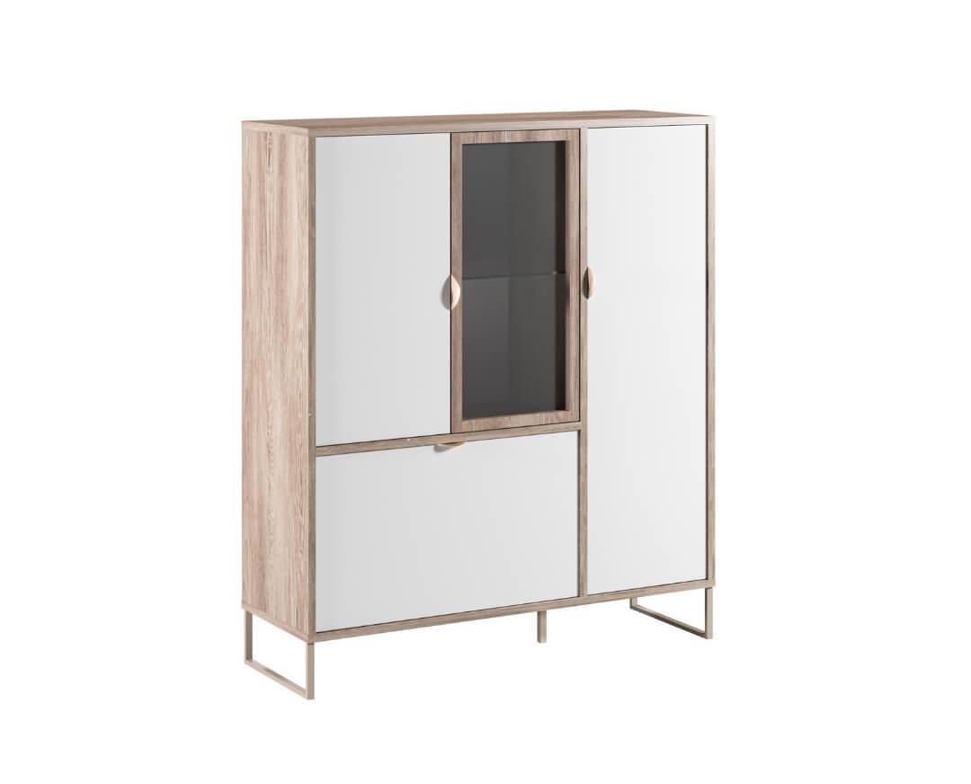Showcase low Denver Oak Kalaj with White glossy 106.4x35x123cm. Melamine 1.064W0.35H1.13