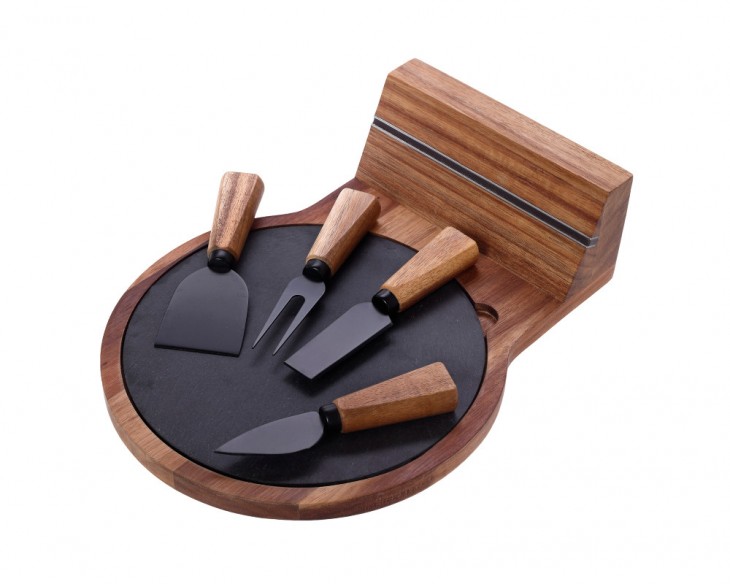 5 SET CHEESE KNIFES AND PLATEAU ACACIA Wood 23*29*16