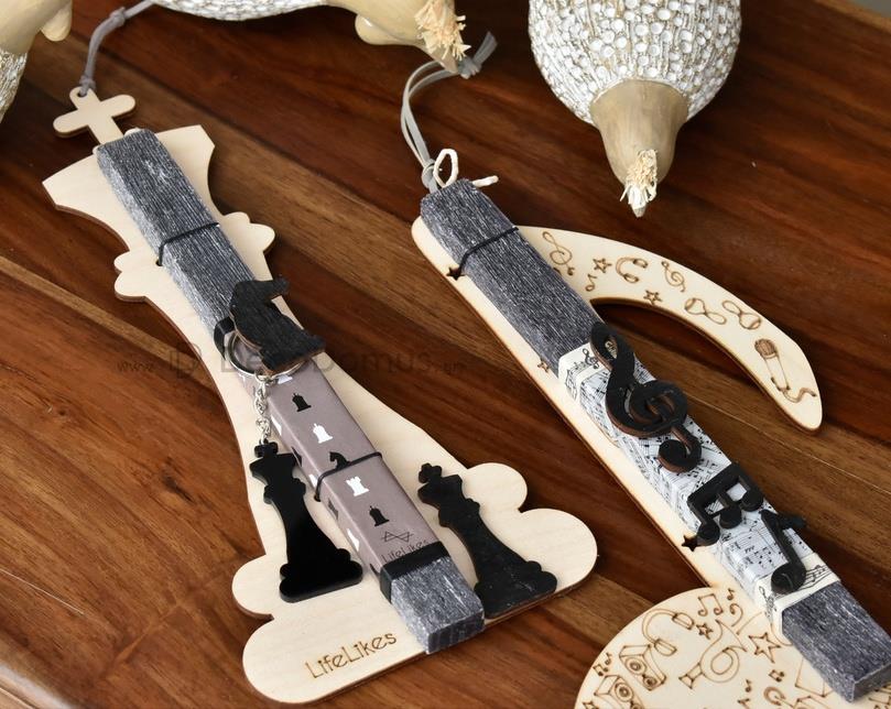 This Easter candle is designed for music lovers! In a gray shade, it is \"hosted\" on a wooden structure in a matching design that you can then hang on your wall.